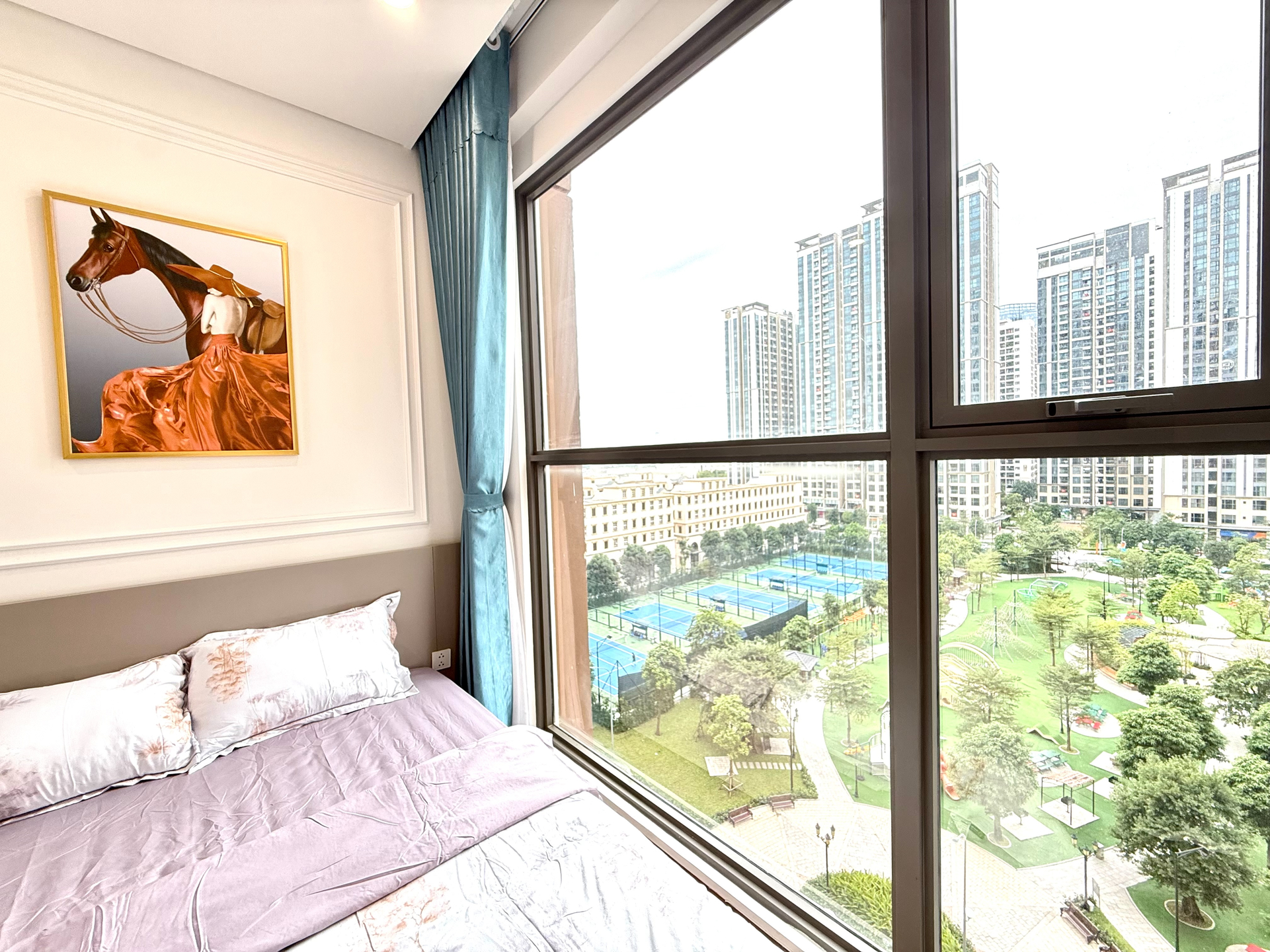 Căn hộ 1 phòng ngủ tại Masteri Waterfront sở hữu diện tích tim tường 45.9 m², thông thuỷ 42.8 m². Hướng Tây Nam thoáng đãng, view công viên xanh mát, mang đến không gian sống thư thái.
