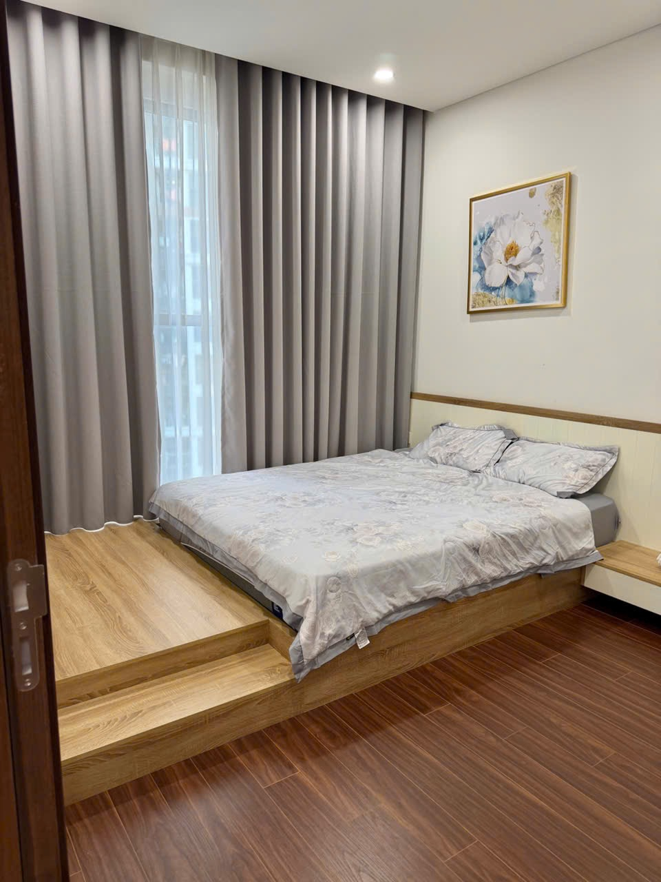 Căn hộ hiện đại, ấm cúng với sàn gỗ, nội thất tông be và trắng. Không gian thoáng đãng, đầy đủ tiện nghi, hoàn thiện cao cấp.