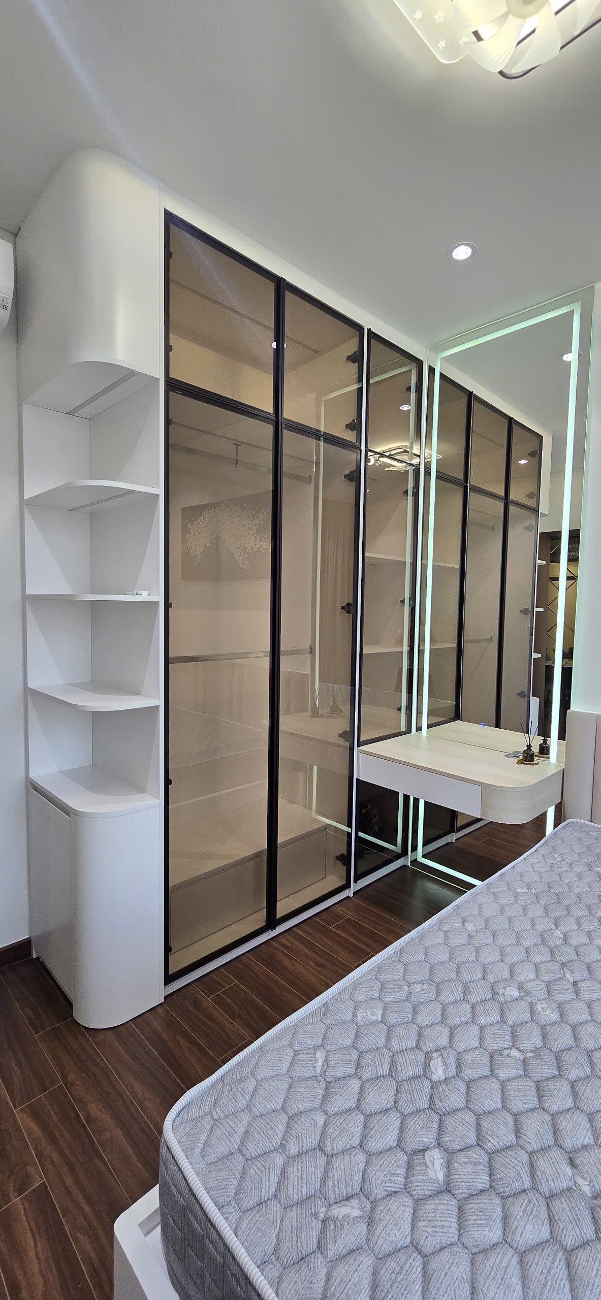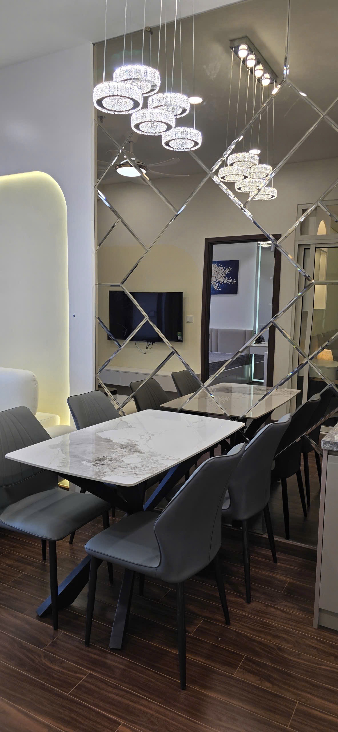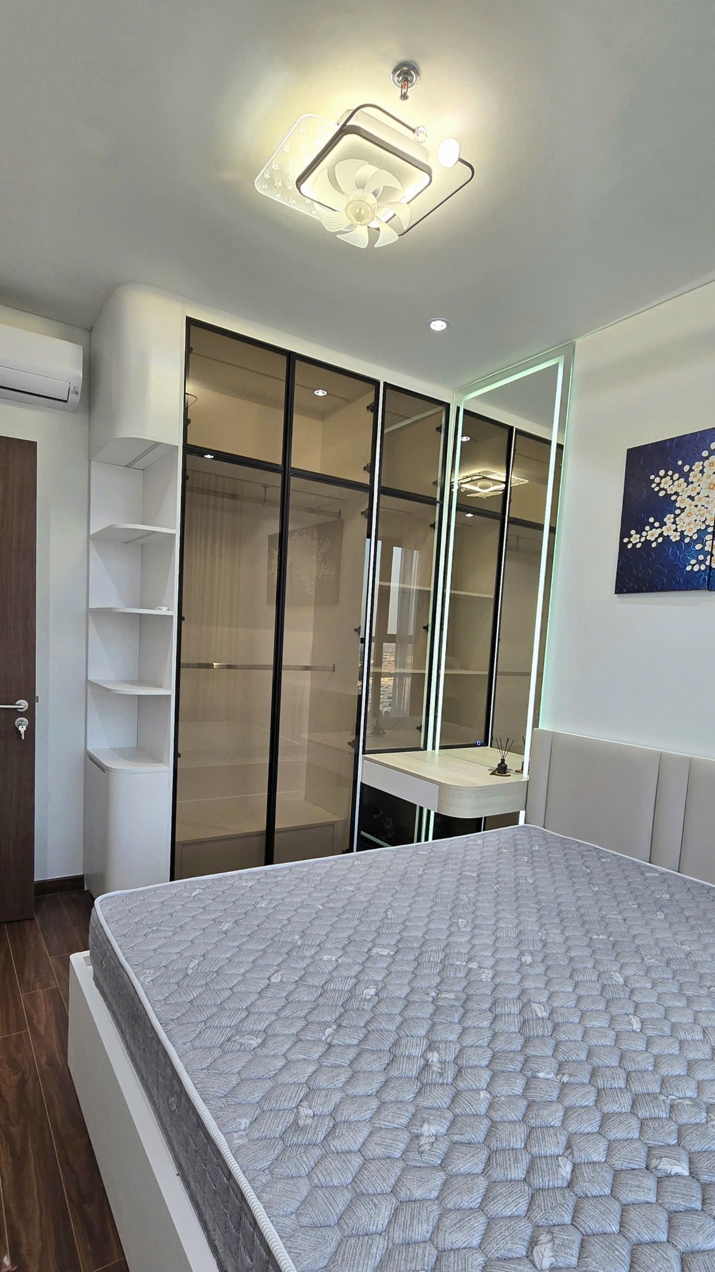 Căn hộ hiện đại, thoáng đãng với sàn gỗ ấm cúng và ánh sáng tự nhiên chan hòa. Nội thất đầy đủ, thiết kế thông minh tối ưu không gian, mang lại trải nghiệm sống tiện nghi và thoải mái.