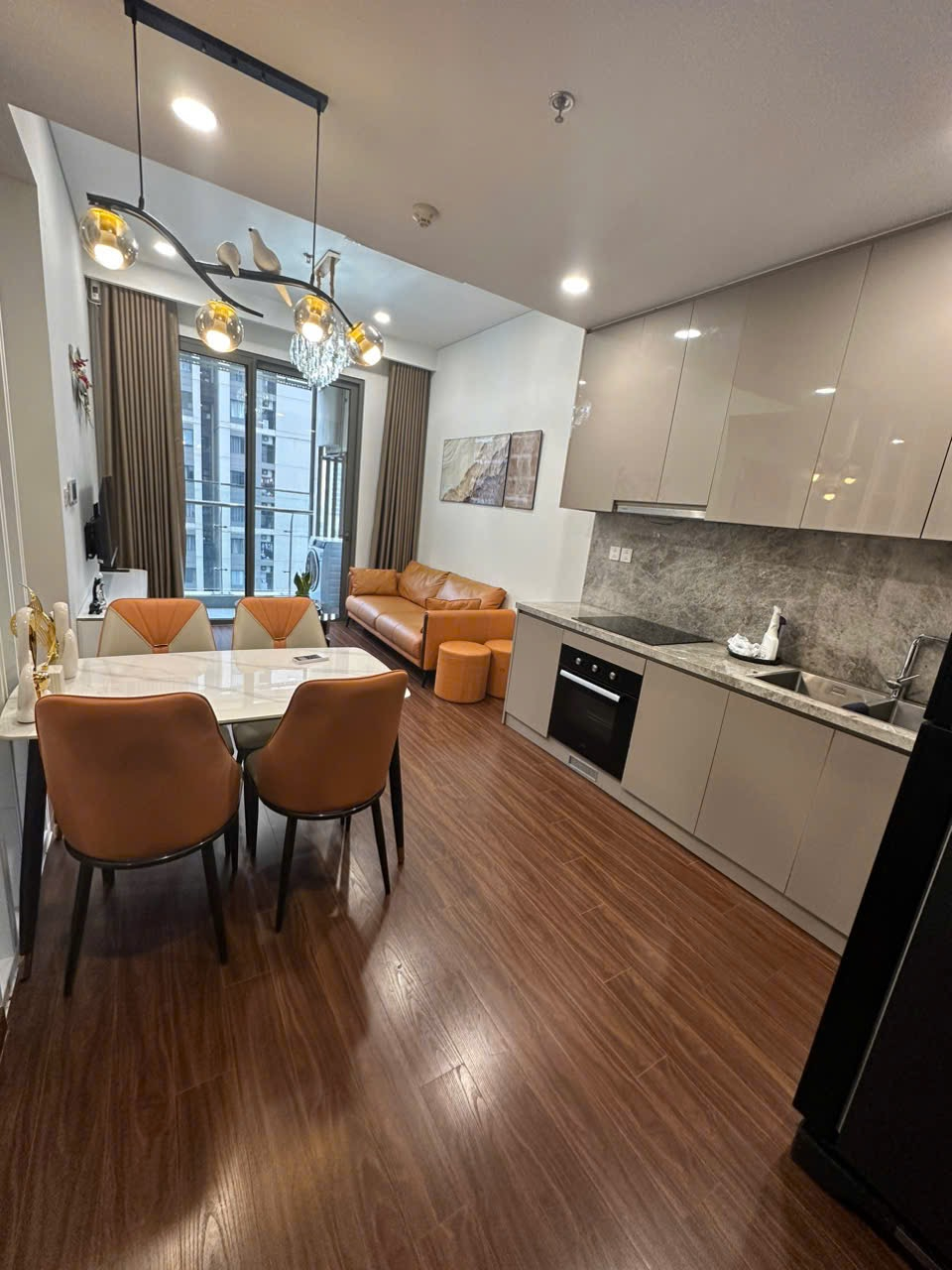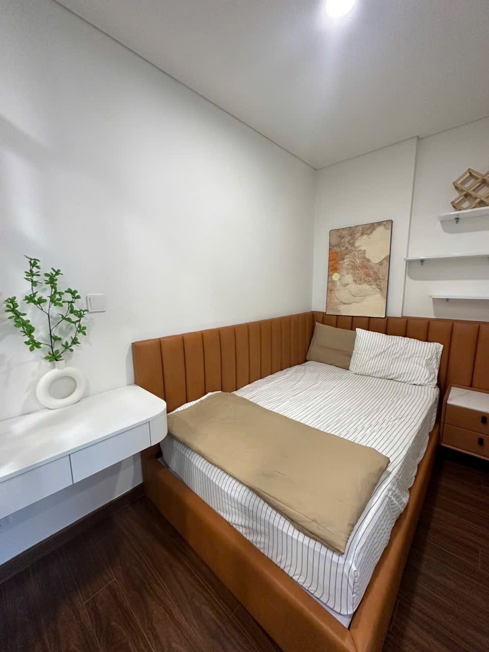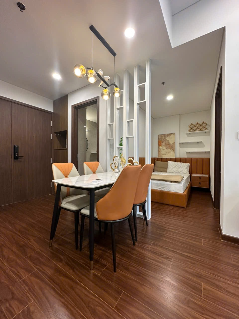 Căn hộ hiện đại, ấm cúng với sàn gỗ và nội thất tông cam đất nổi bật. Không gian mở thoáng đãng, đầy đủ tiện nghi và hoàn thiện cao cấp.