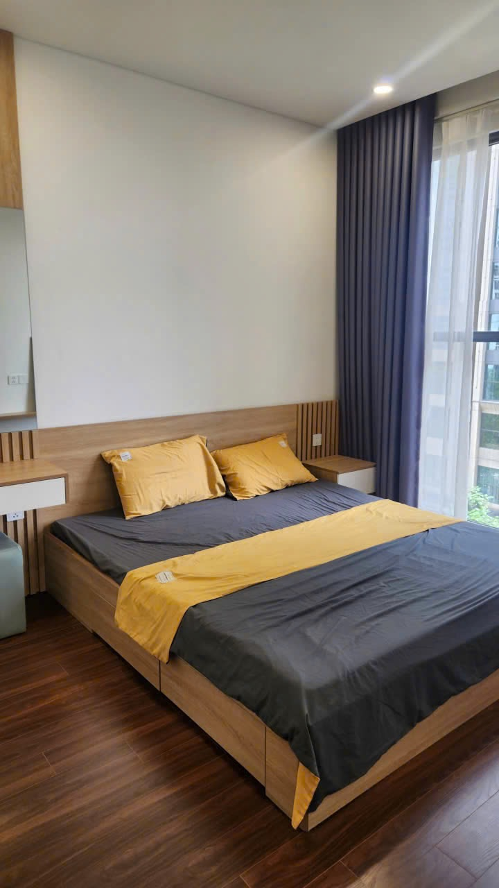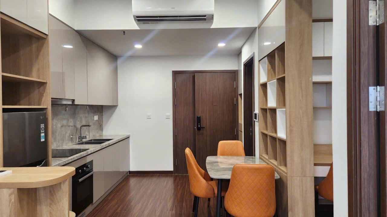 Căn hộ hiện đại, nội thất gỗ tông màu ấm áp, đầy đủ tiện nghi. Không gian thoáng đãng với ánh sáng tự nhiên, hoàn thiện cao cấp.