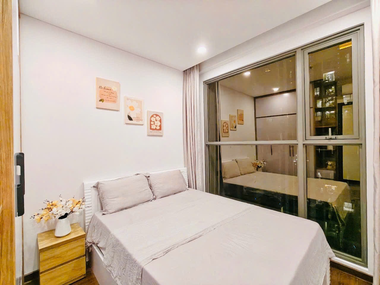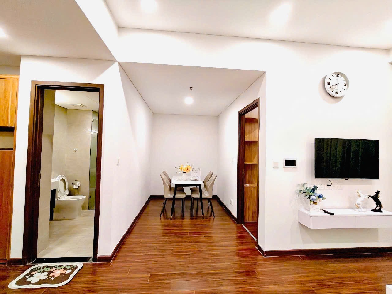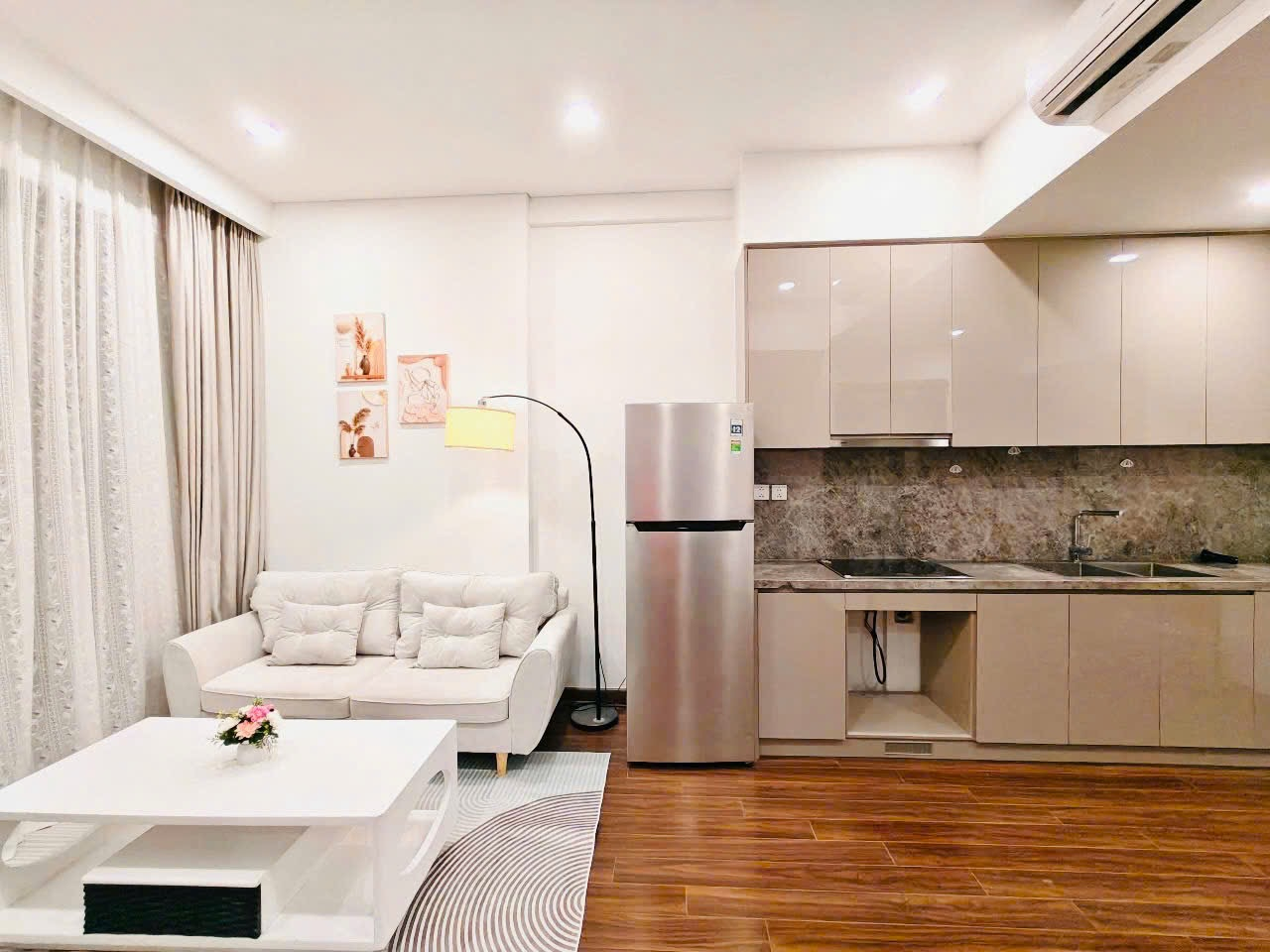 Căn hộ hiện đại, ấm cúng với tông màu trắng be chủ đạo, sàn gỗ sang trọng. Nội thất đầy đủ, tiện nghi cao cấp, mang lại không gian sống thoải mái.