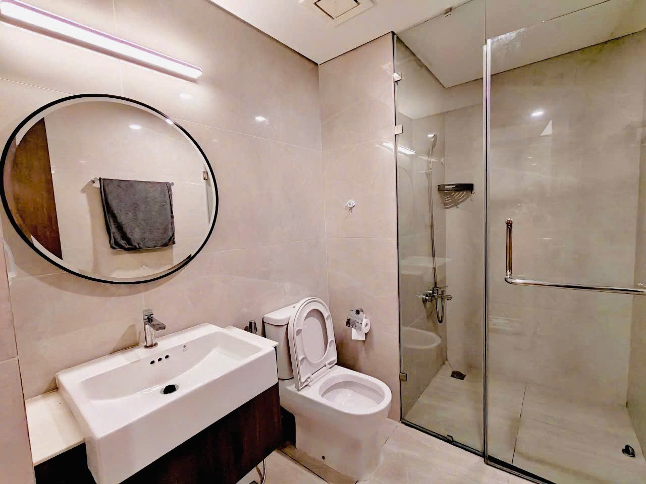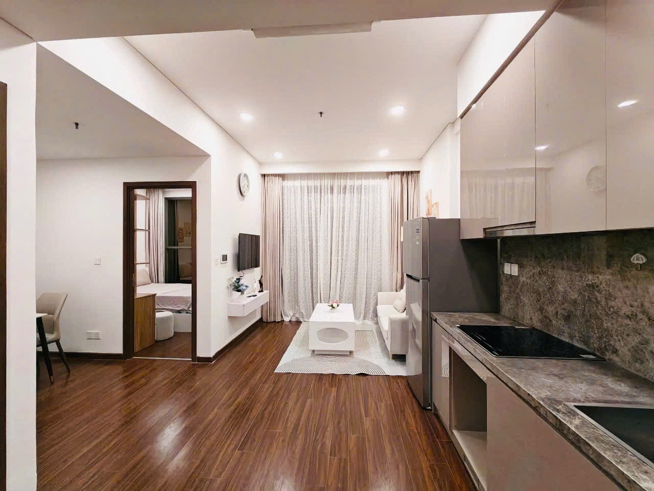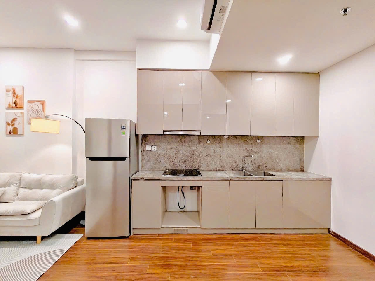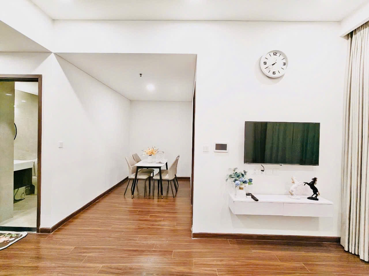 Căn hộ hiện đại, ấm cúng với tông màu trắng be chủ đạo, sàn gỗ sang trọng. Nội thất đầy đủ, tiện nghi cao cấp, mang lại không gian sống thoải mái.