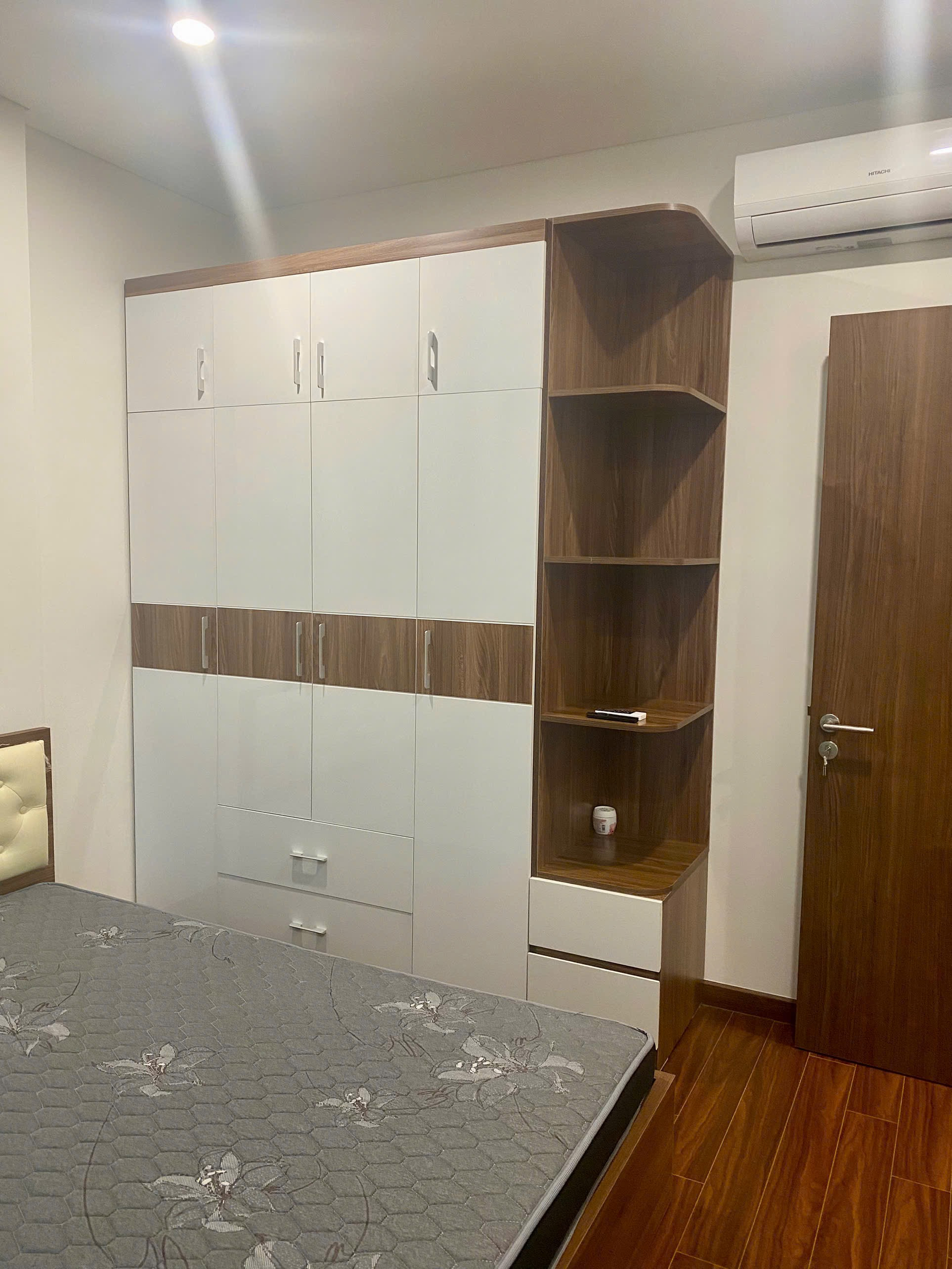Căn hộ hiện đại, thoáng đãng với sàn gỗ ấm cúng, nội thất đầy đủ và hoàn thiện tốt. Không gian sống tiện nghi, sạch sẽ.