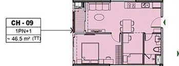 Hướng ban côngTây Bắc | Diện tích46.5 m² |