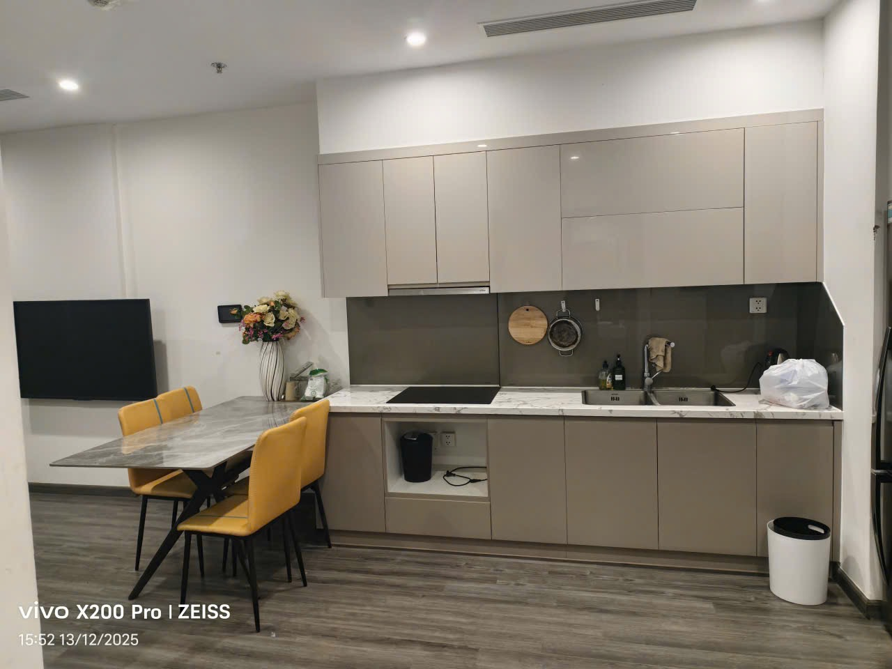 Căn hộ hiện đại, đầy đủ tiện nghi với không gian mở thoáng đãng. Nội thất tông màu trung tính kết hợp điểm nhấn vàng ấm cúng, hoàn thiện cao cấp.