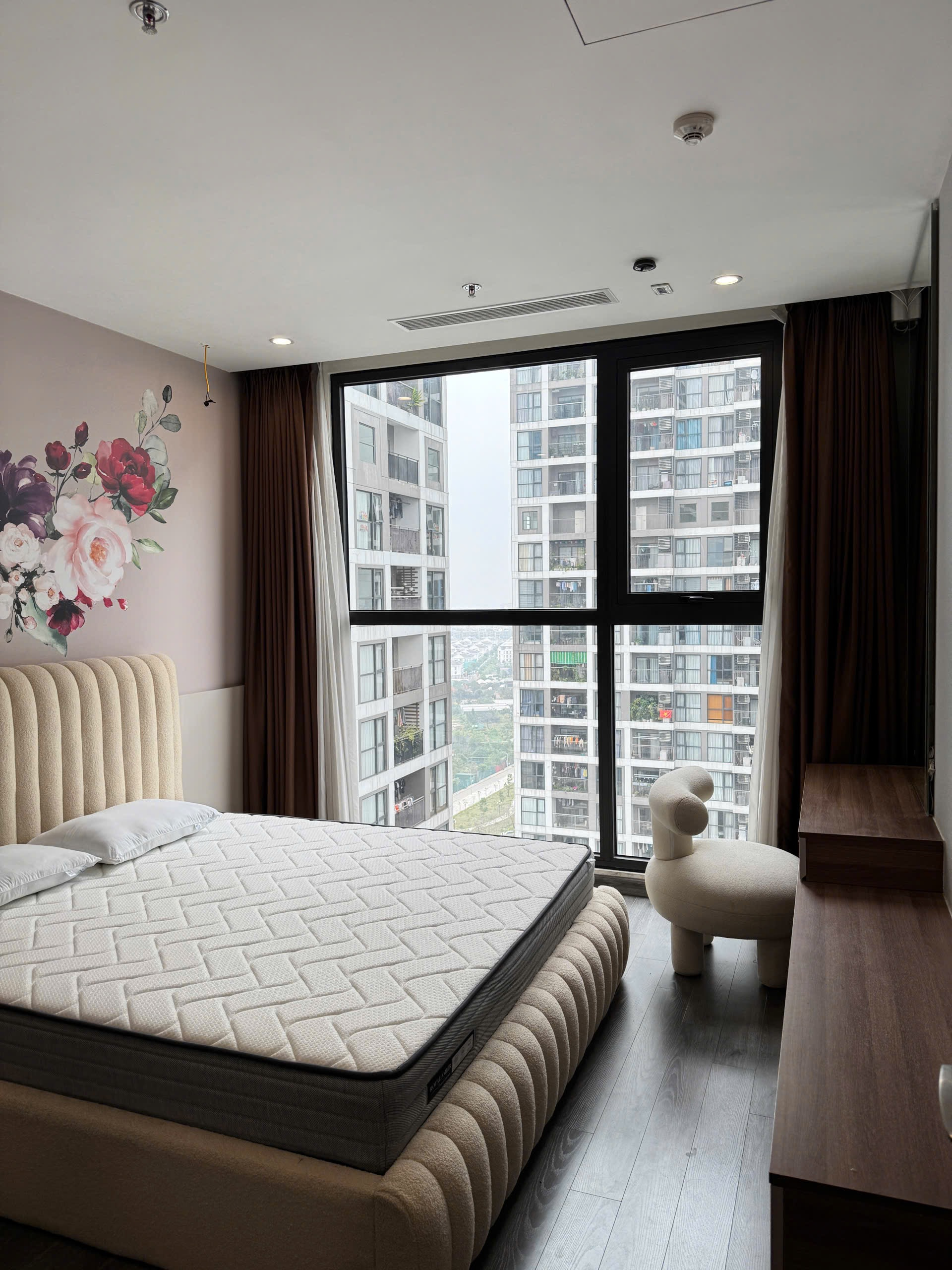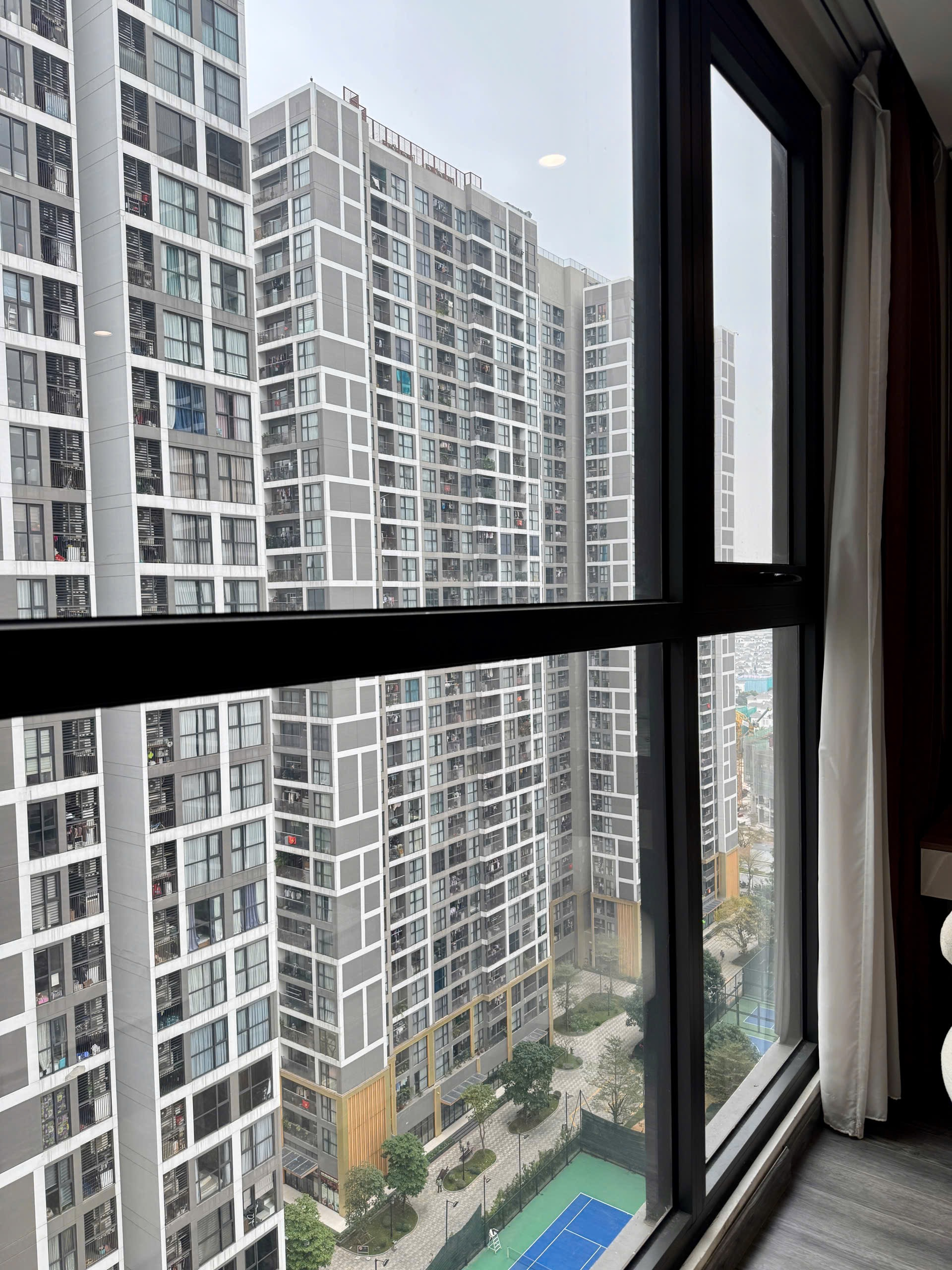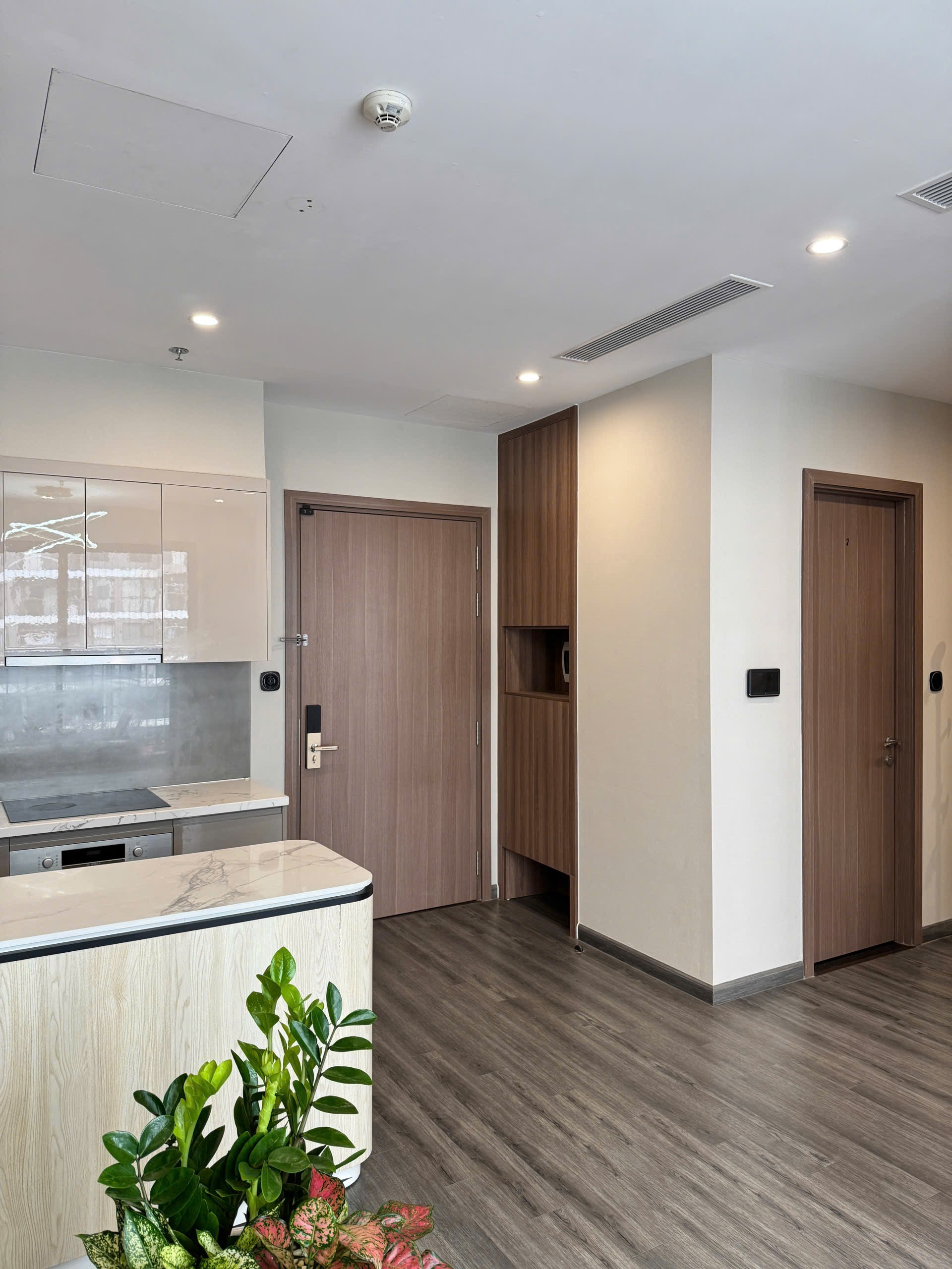 Căn hộ hiện đại, nội thất đầy đủ với tông màu trung tính ấm áp. Không gian thoáng đãng, sàn gỗ sang trọng, ban công view thành phố.