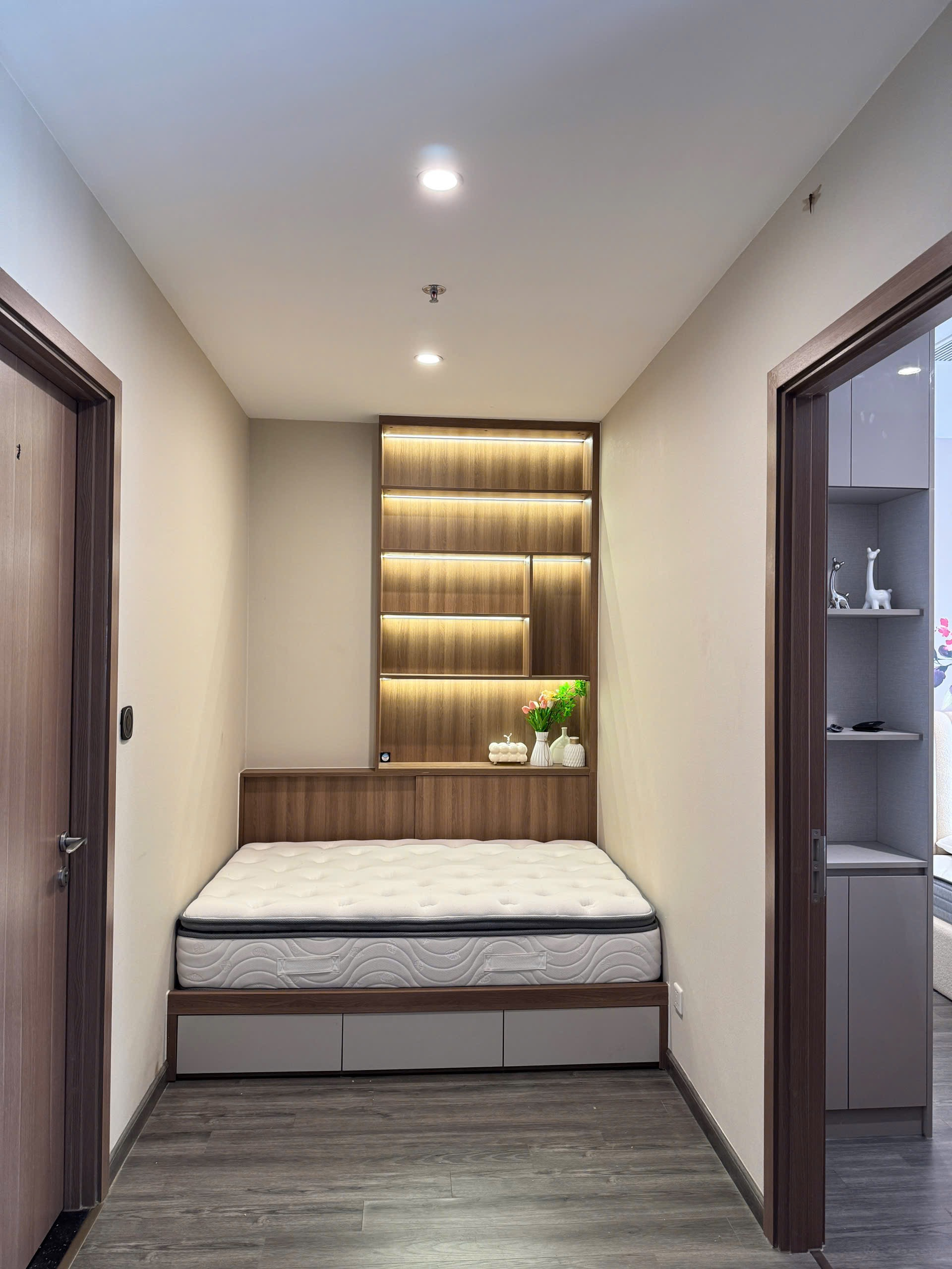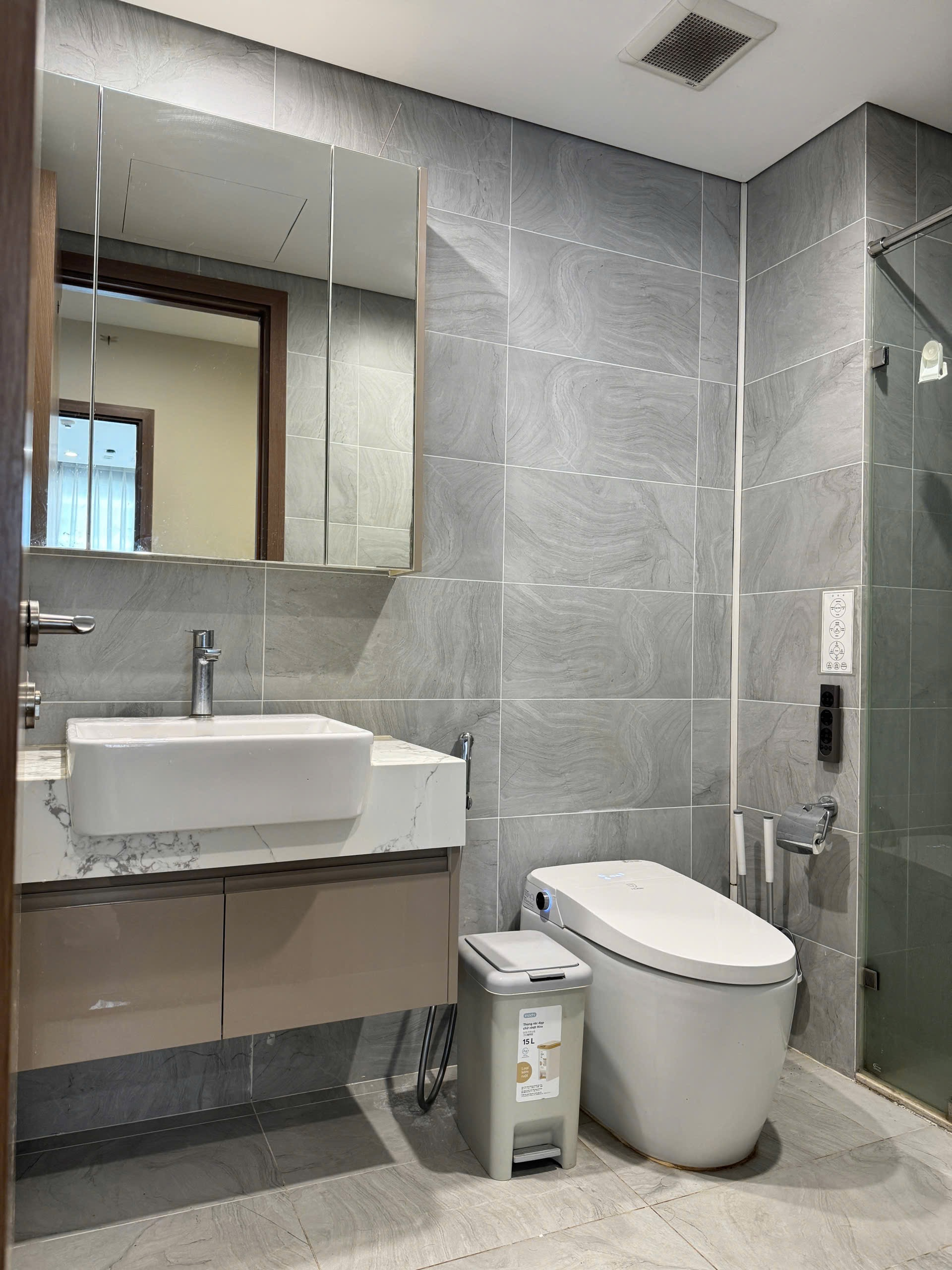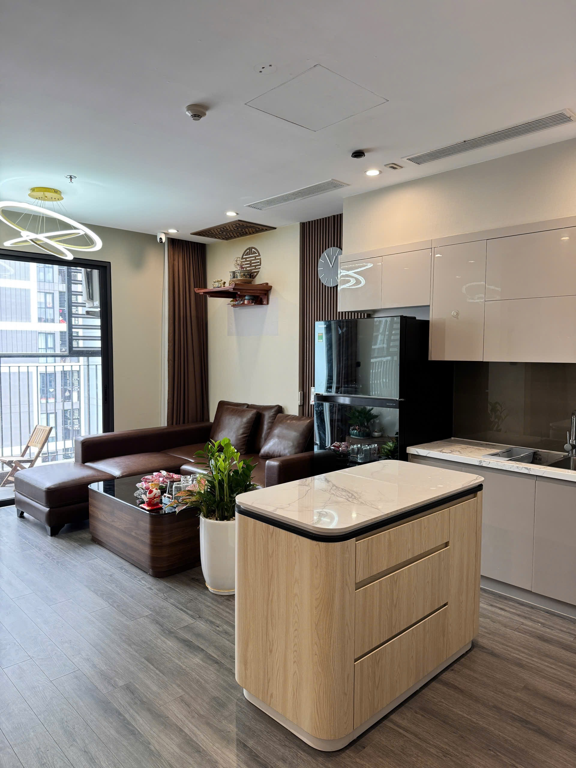 Căn hộ hiện đại, nội thất đầy đủ với tông màu trung tính ấm áp. Không gian thoáng đãng, sàn gỗ sang trọng, ban công view thành phố.