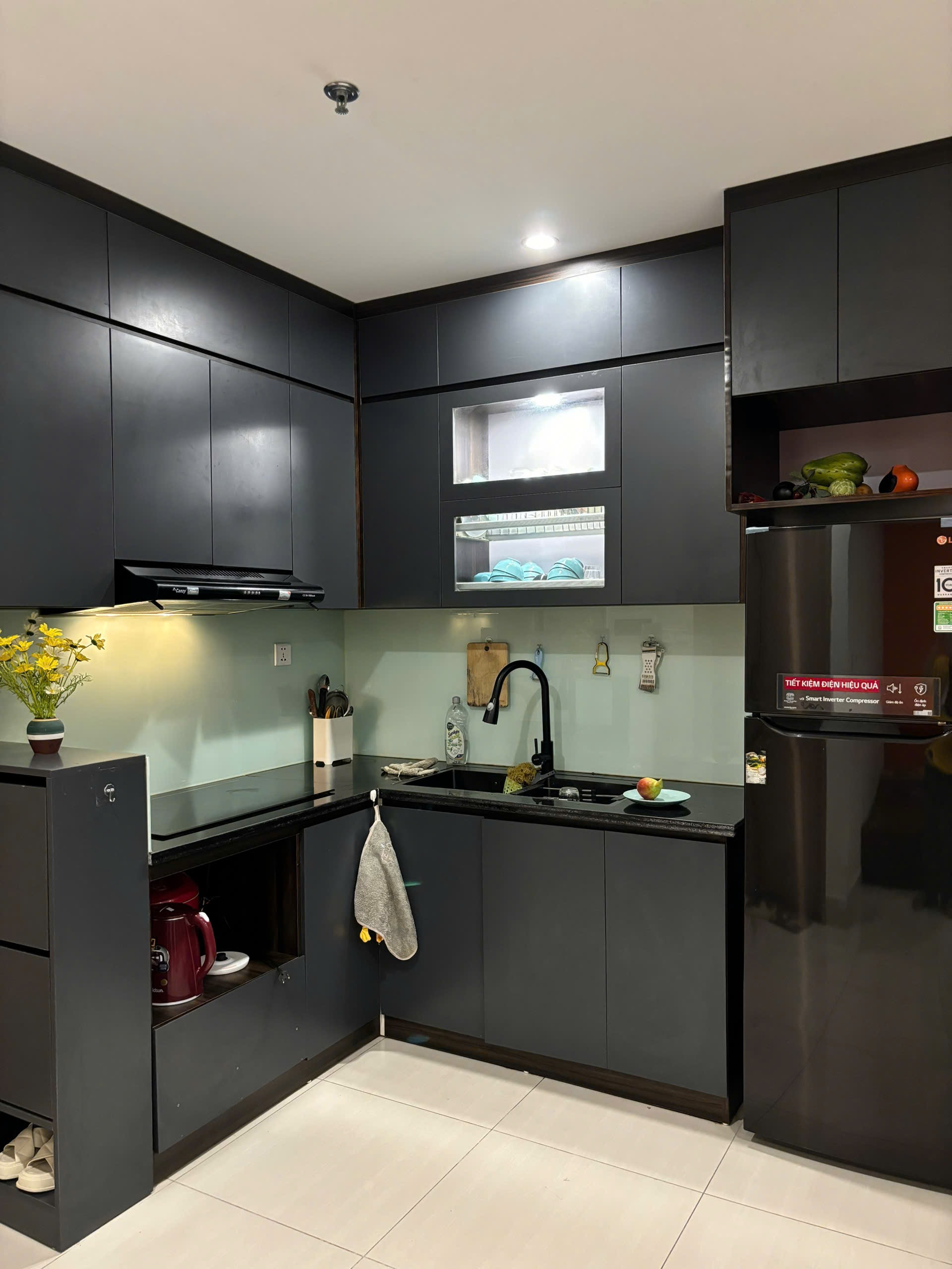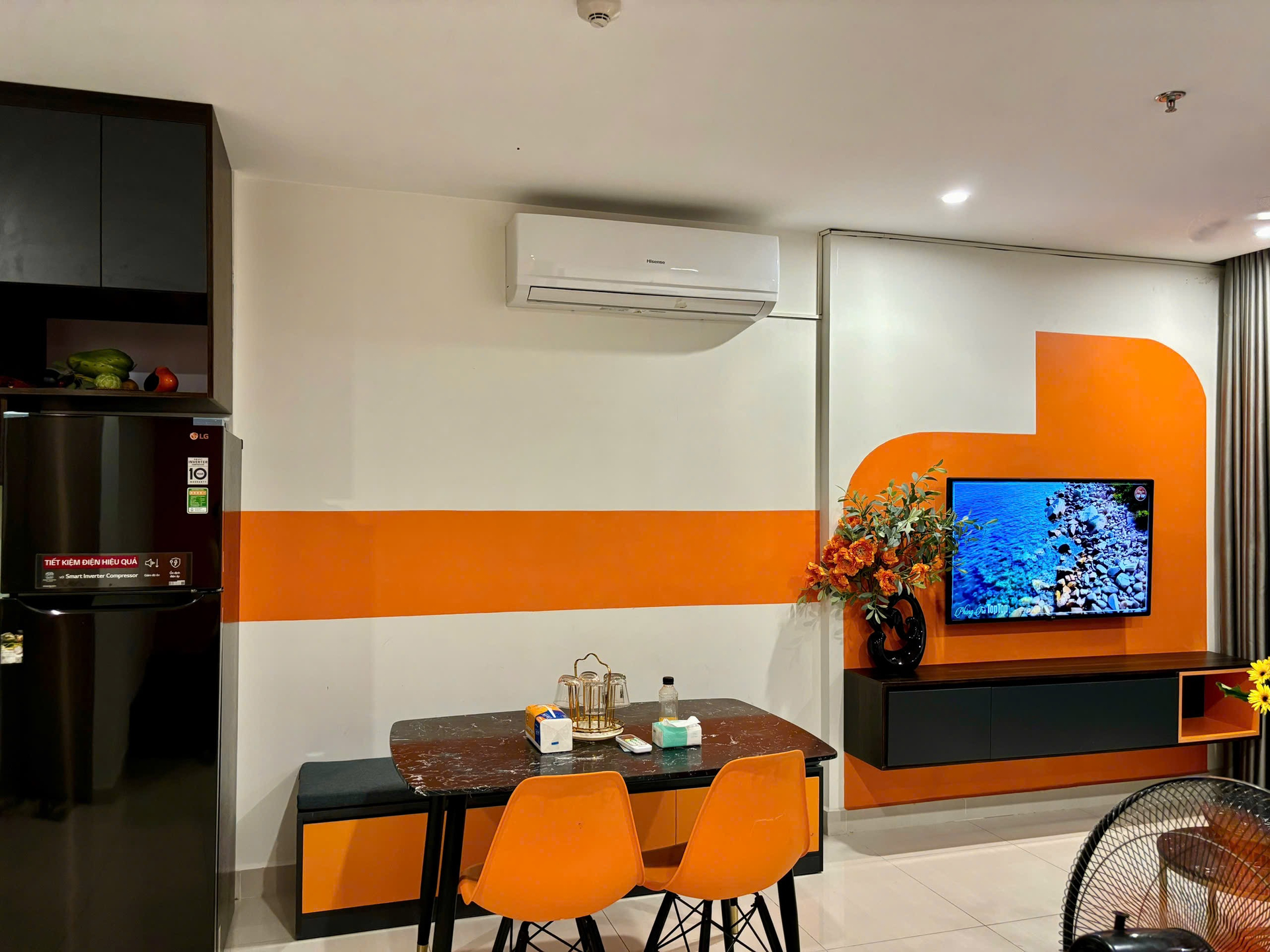 Căn hộ hiện đại, đầy đủ tiện nghi với thiết kế trẻ trung, tông màu cam - xám nổi bật. Không gian sống tiện lợi, hoàn thiện cao cấp.
