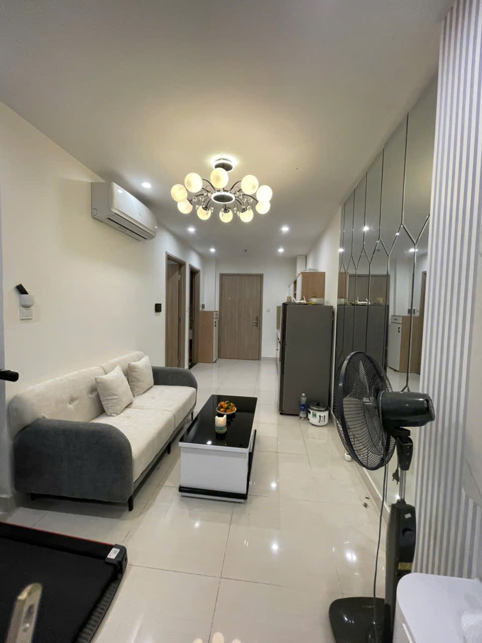 Căn hộ hiện đại, thoáng đãng với tông màu trắng chủ đạo, sàn gạch sáng. Nội thất đầy đủ, hoàn thiện cao cấp, mang lại không gian sống tiện nghi.
