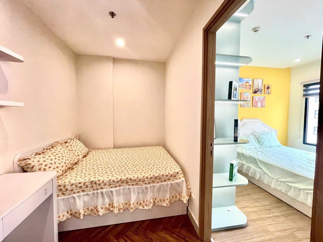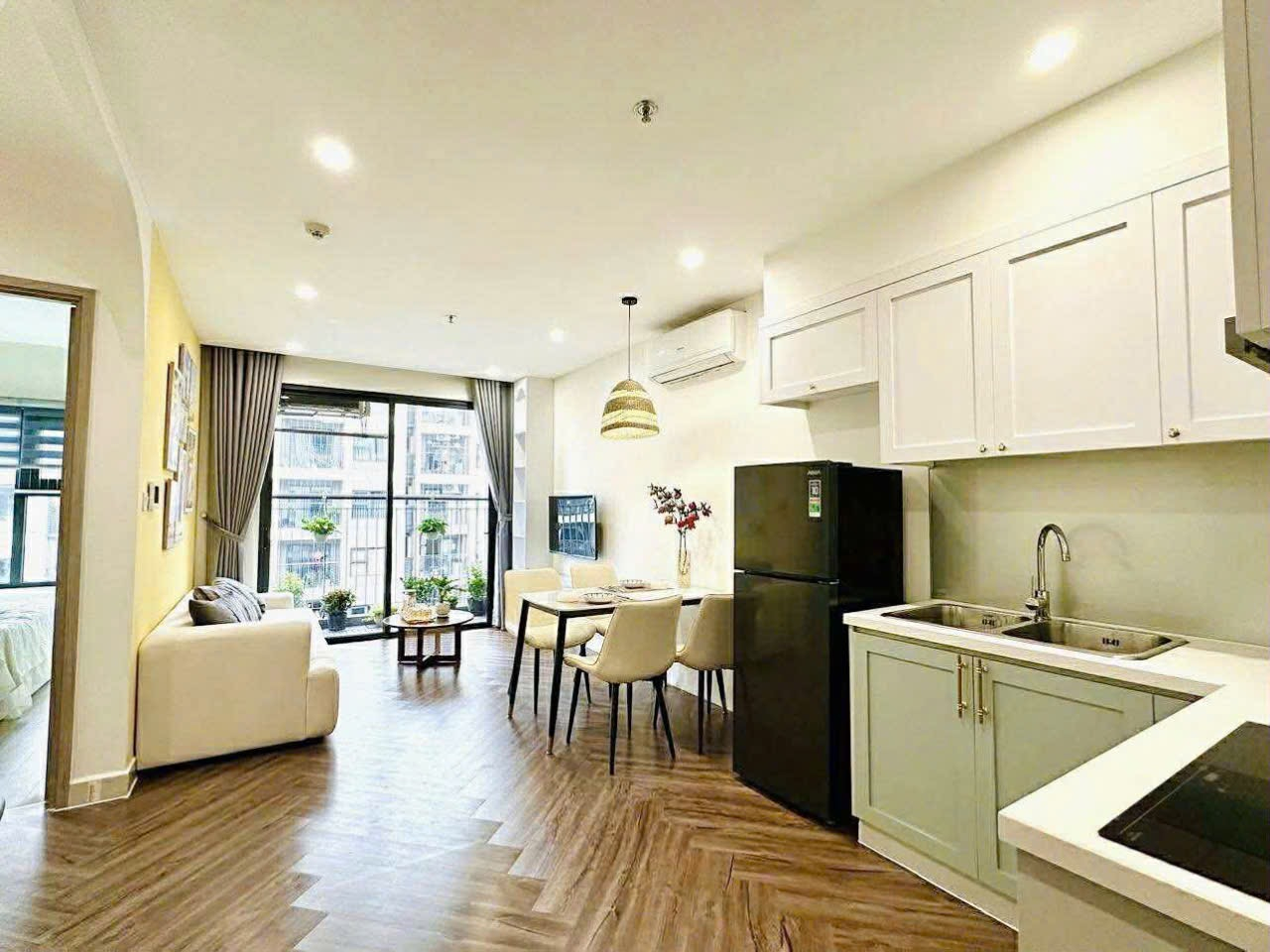 Căn hộ hiện đại, ấm cúng với tông màu vàng tươi sáng, sàn gỗ tự nhiên và ánh sáng chan hòa. Nội thất đầy đủ, tiện nghi, mang đến không gian sống trẻ trung và thoải mái.