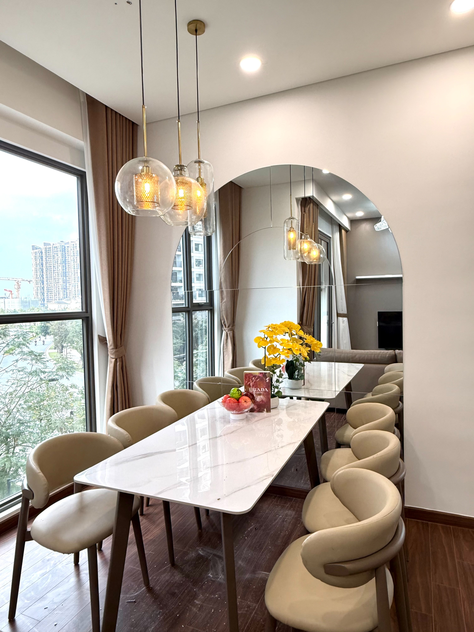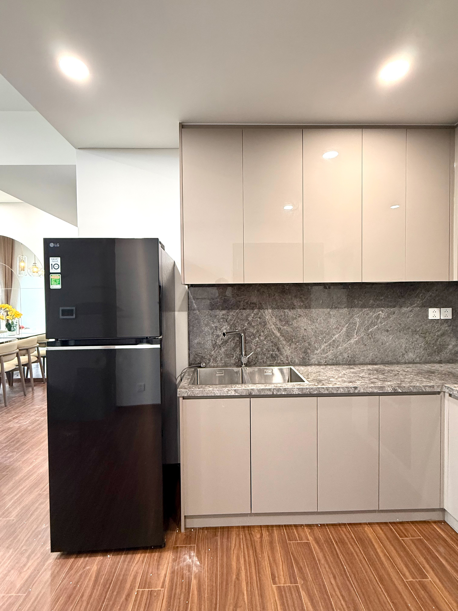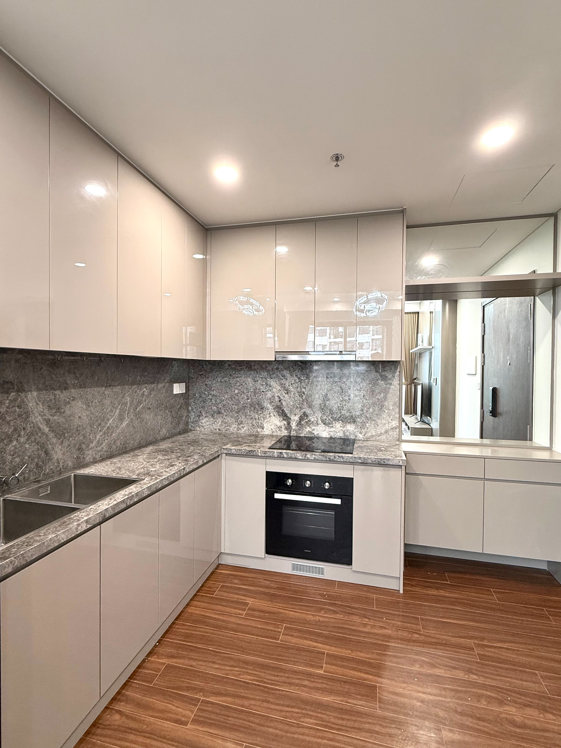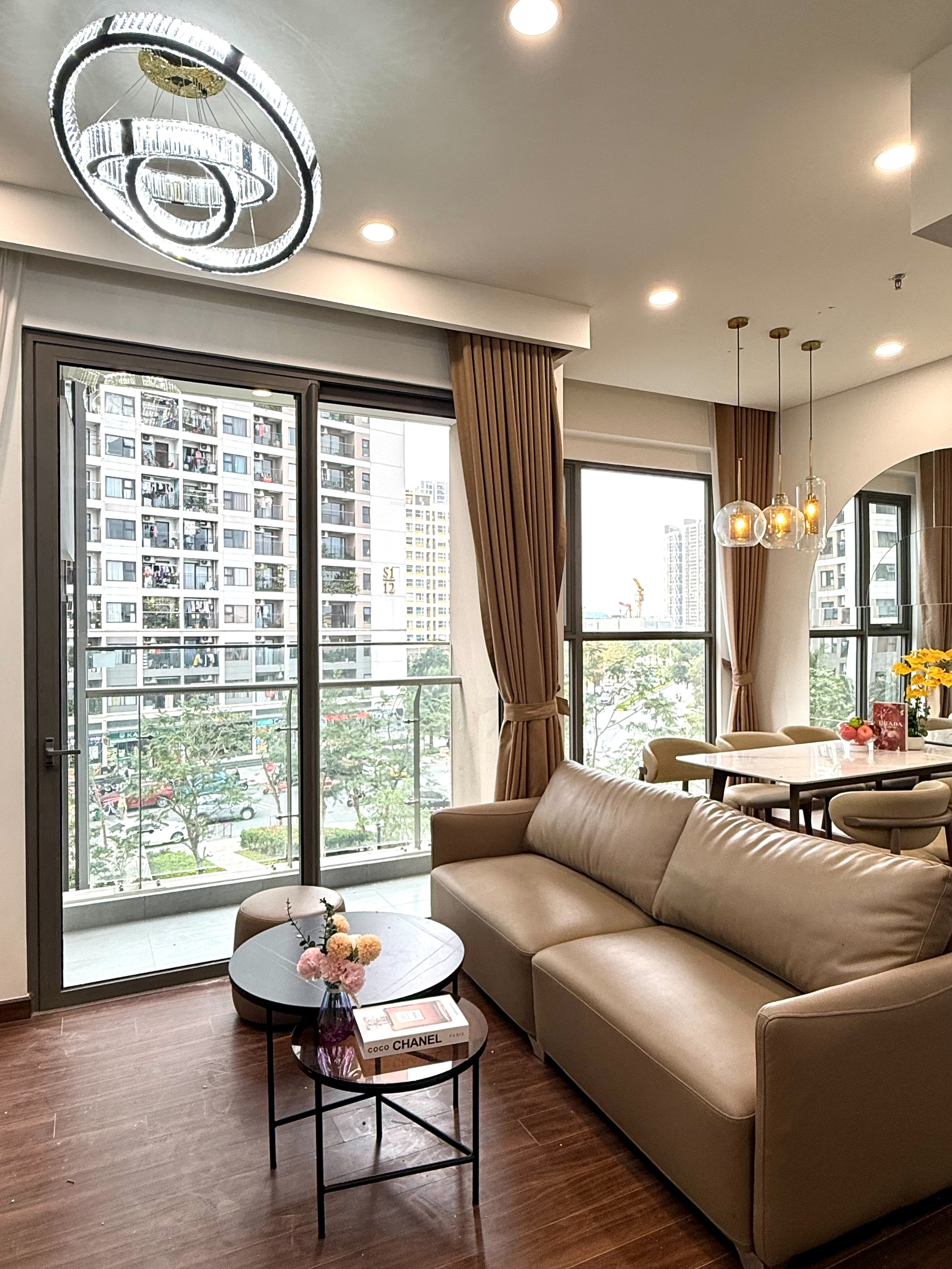 Căn hộ hiện đại, thoáng đãng với sàn gỗ ấm cúng, nội thất tông màu be trang nhã. Ánh sáng tự nhiên chan hòa, đầy đủ tiện nghi và hoàn thiện cao cấp.