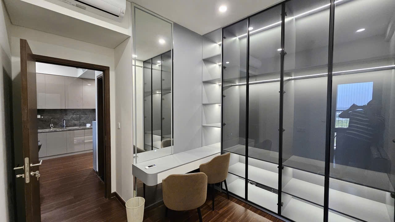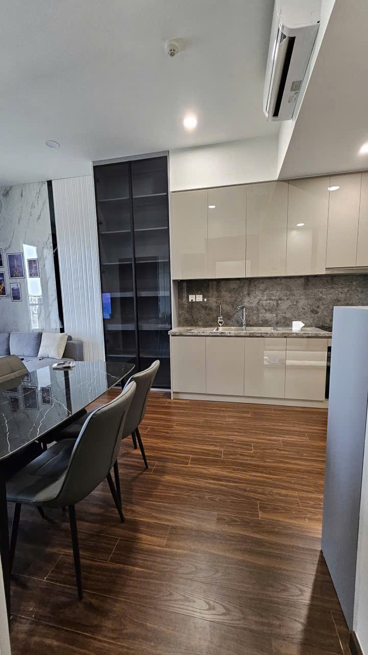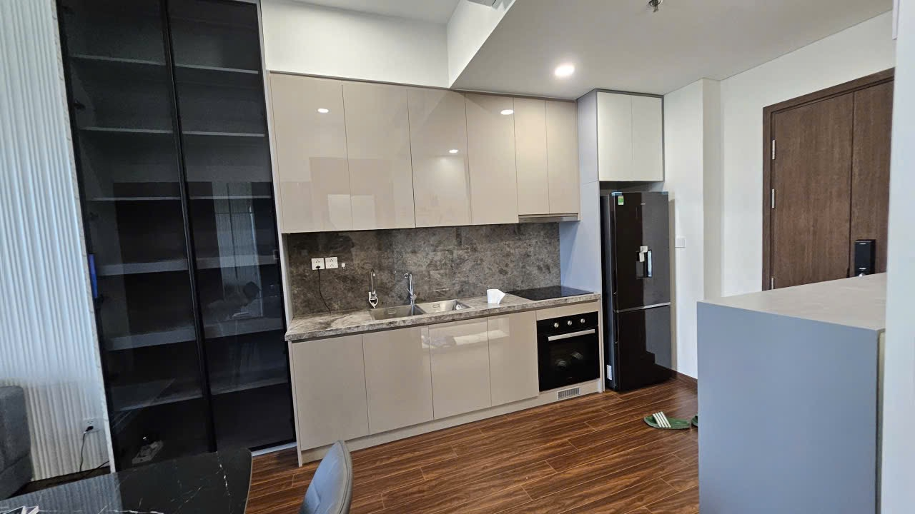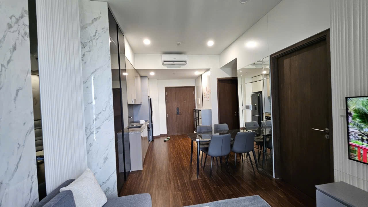 Căn hộ hiện đại với sàn gỗ ấm cúng, nội thất tông xám sang trọng và bếp mở tiện nghi. Ánh sáng tự nhiên chan hòa cùng ban công view đẹp, mang lại không gian sống lý tưởng.