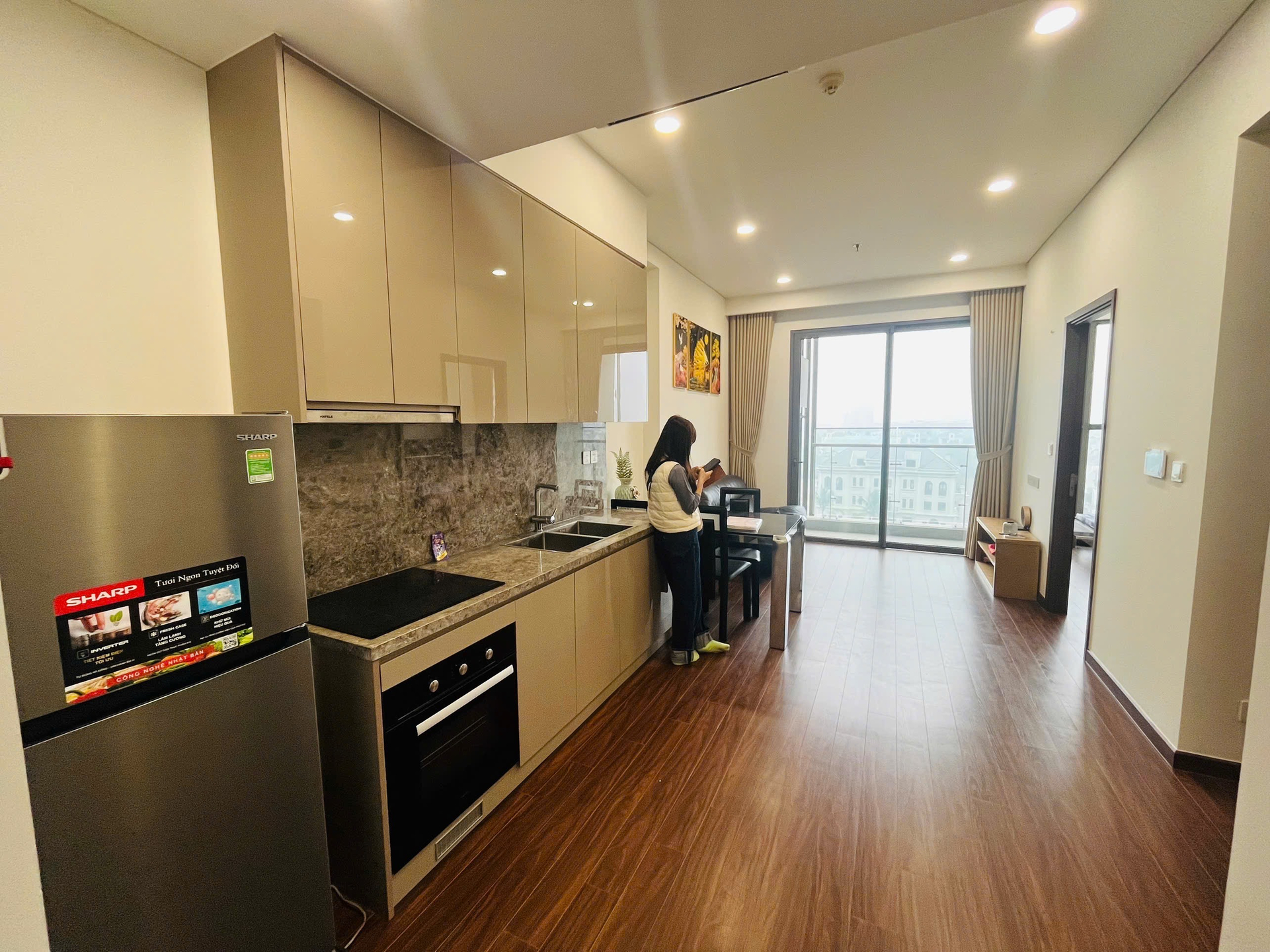 Căn hộ hiện đại với sàn gỗ ấm cúng, không gian mở thoáng đãng. Bếp đầy đủ tiện nghi, phòng ngủ có cửa sổ lớn đón ánh sáng tự nhiên.