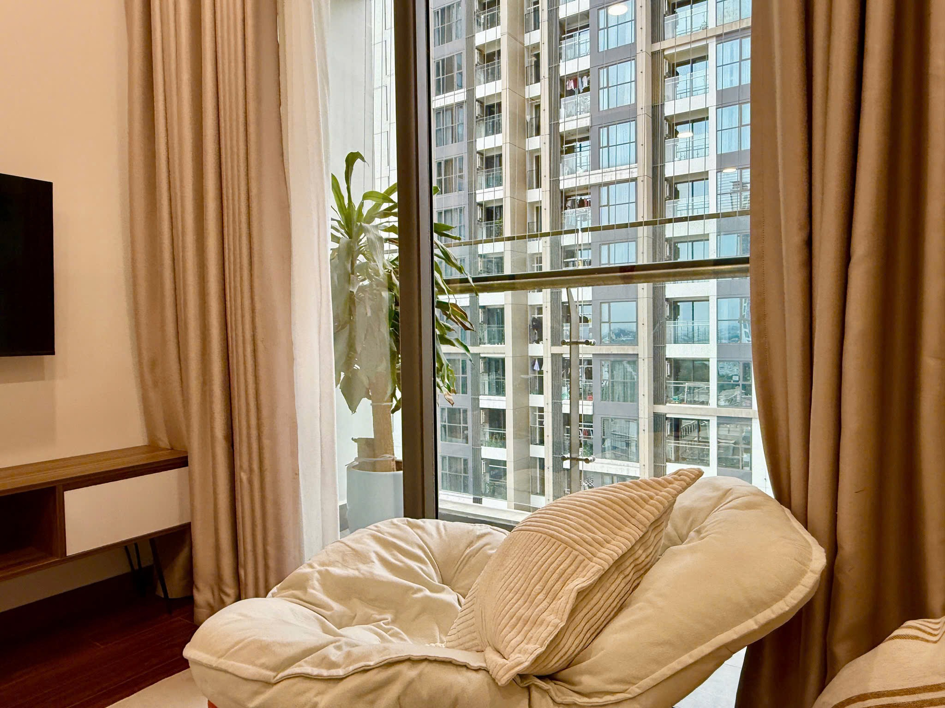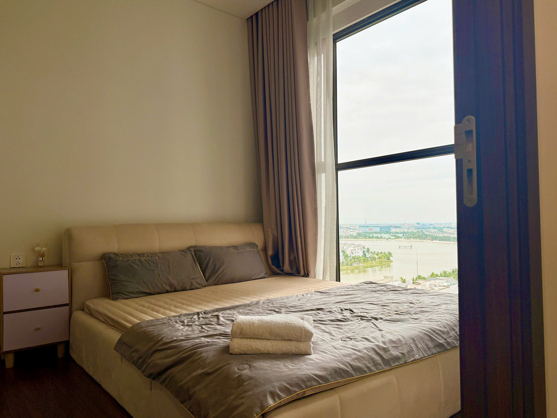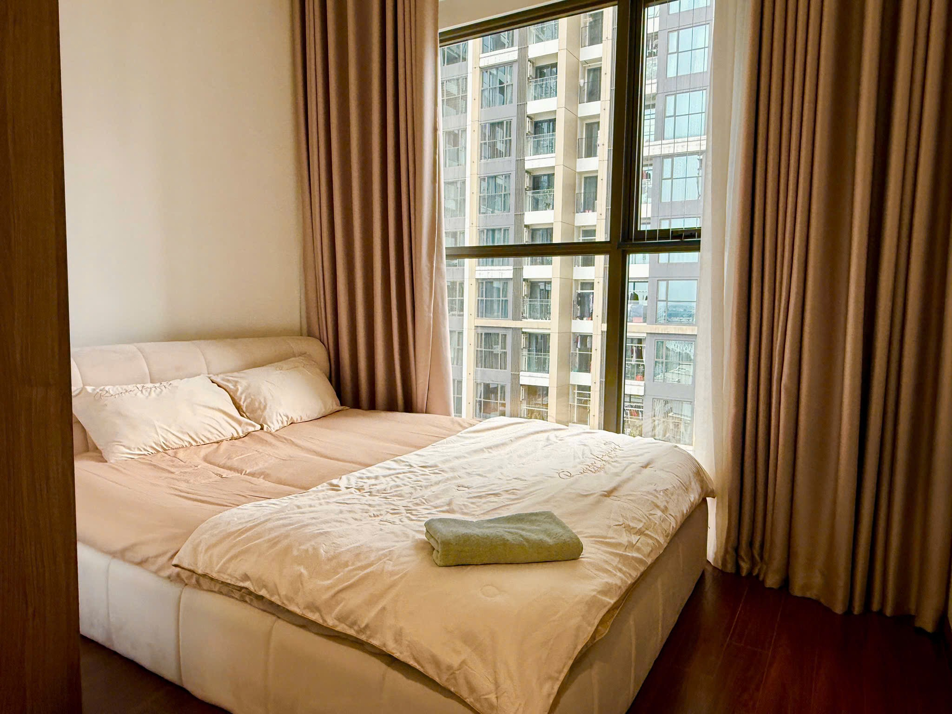 Căn hộ hiện đại, ấm cúng với tông màu be chủ đạo, sàn gỗ sang trọng và ánh sáng tự nhiên. Nội thất đầy đủ, hoàn thiện cao cấp, mang lại không gian sống tiện nghi.