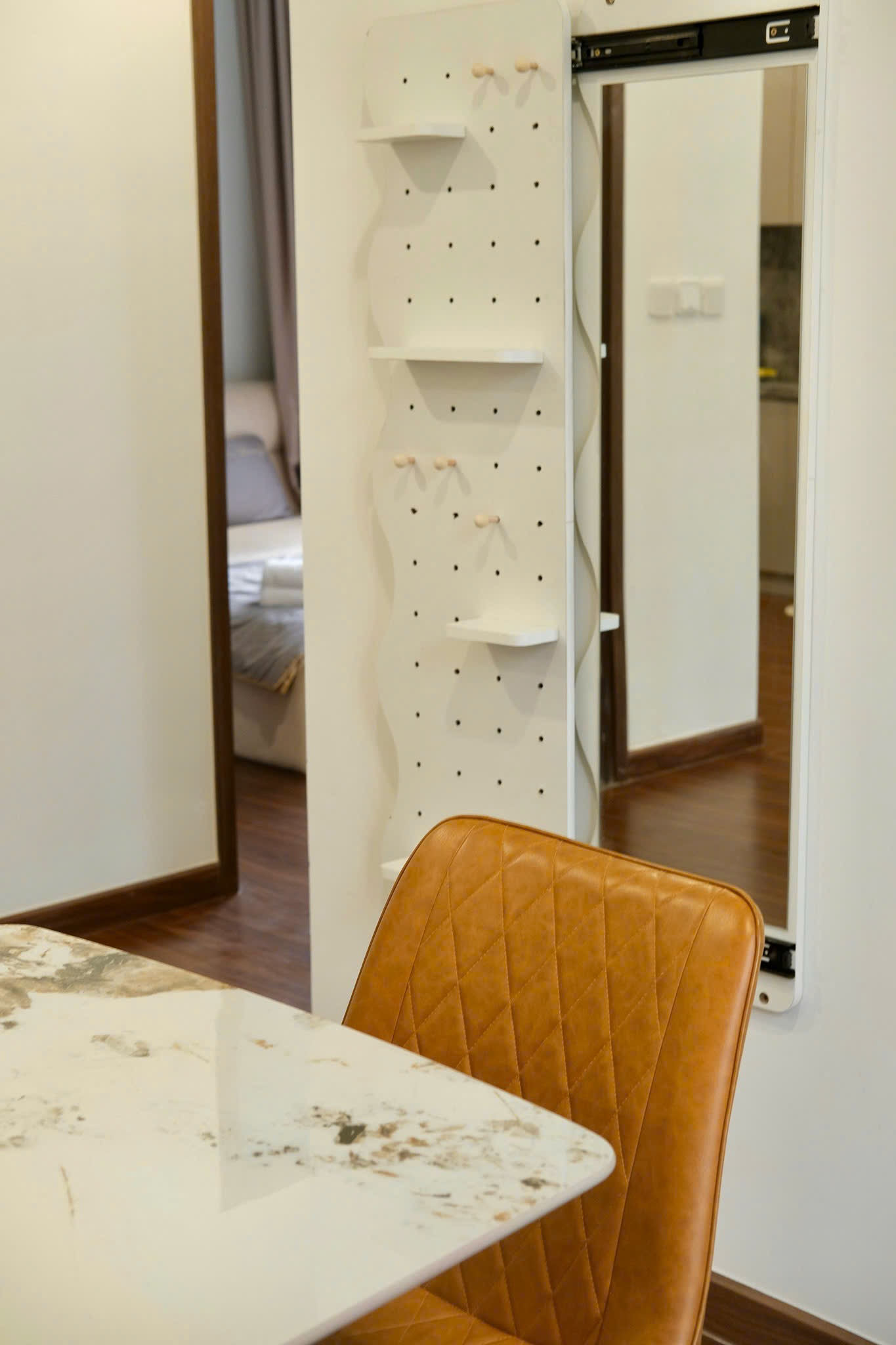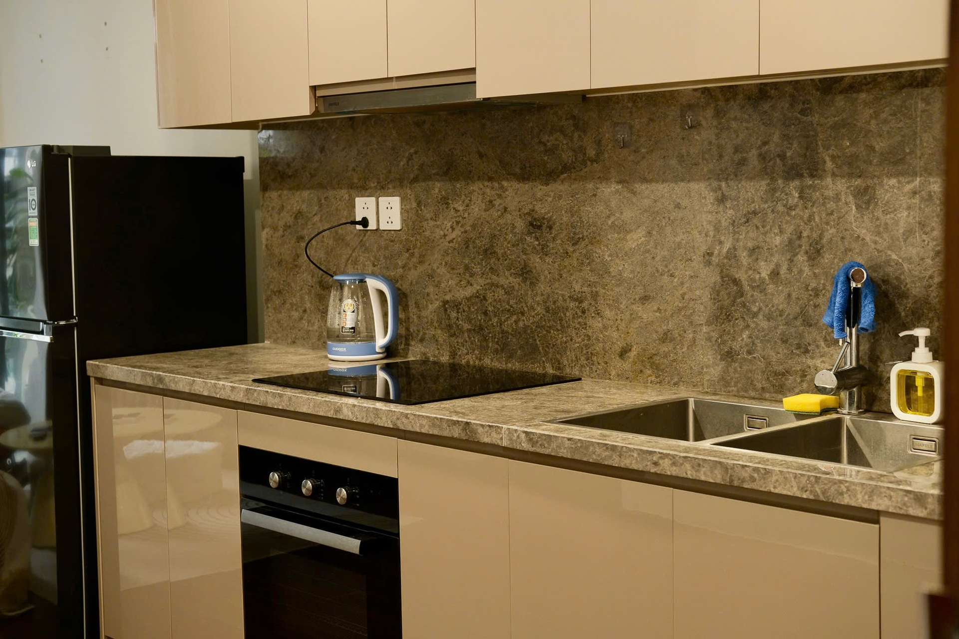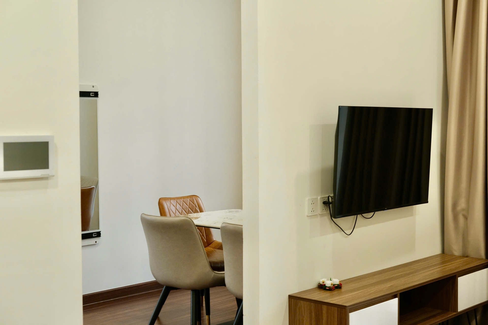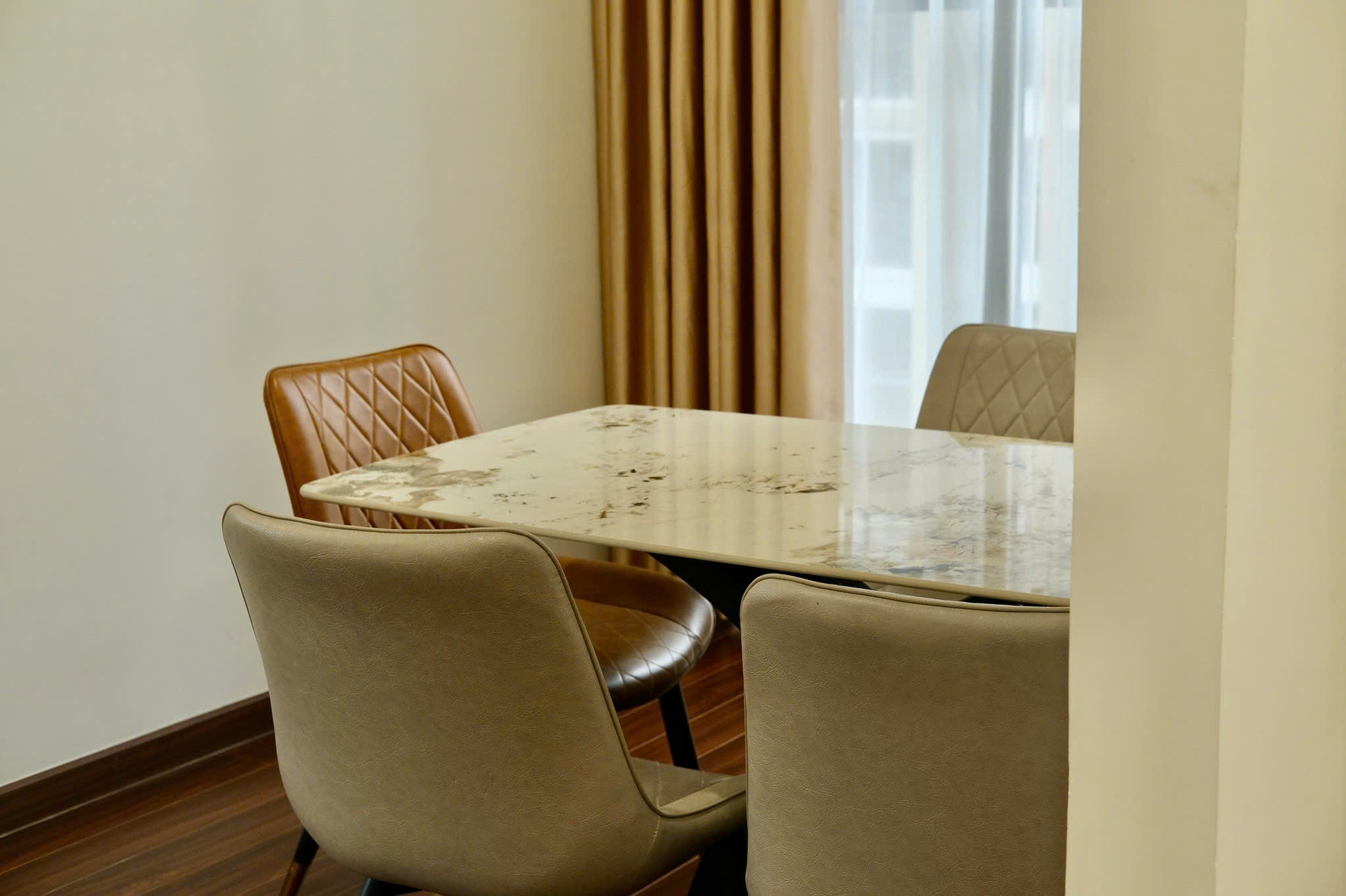 Căn hộ hiện đại, ấm cúng với tông màu be chủ đạo, sàn gỗ sang trọng và ánh sáng tự nhiên. Nội thất đầy đủ, hoàn thiện cao cấp, mang lại không gian sống tiện nghi.