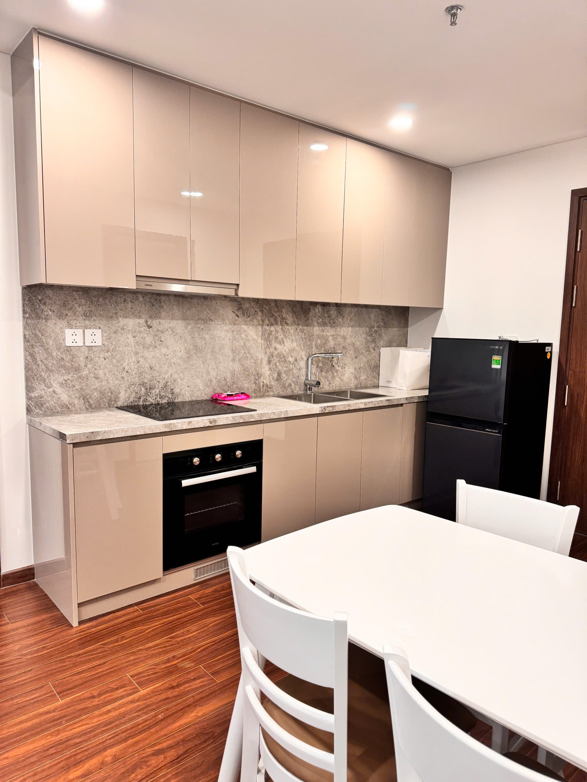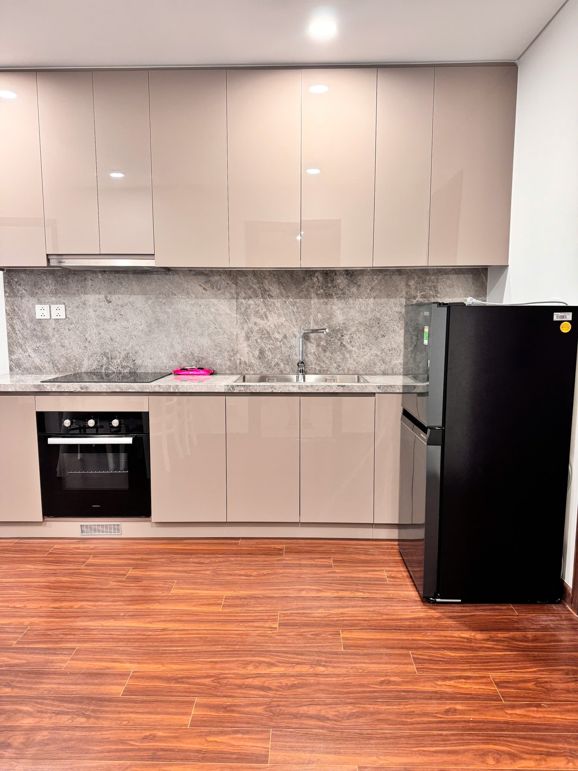 Căn hộ hiện đại, tối giản với sàn gỗ ấm áp, ánh sáng tự nhiên. Bếp mở đầy đủ tiện nghi, không gian thoáng đãng, hoàn thiện mới mẻ.