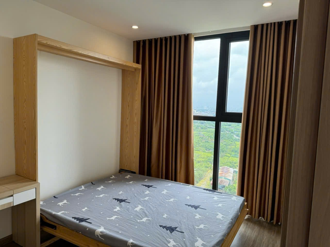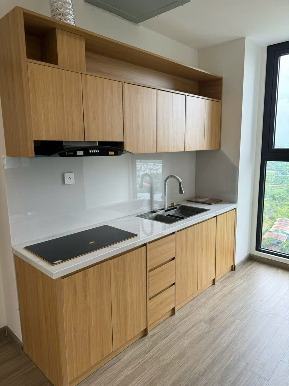 Căn hộ hiện đại, thoáng đãng với sàn gỗ và nội thất gỗ tự nhiên. Ánh sáng tự nhiên chan hòa, bếp mở tiện nghi, hoàn thiện cao cấp.