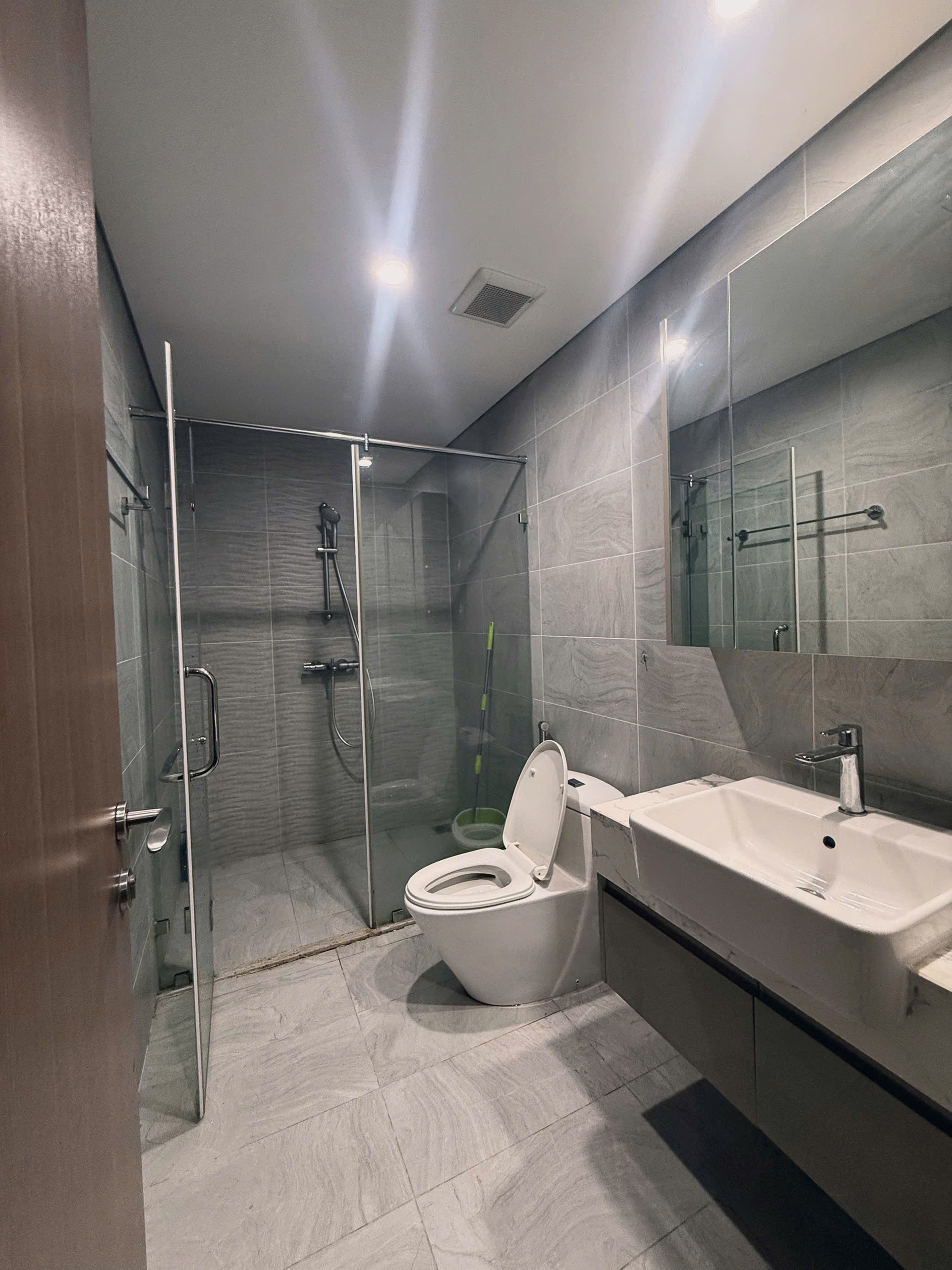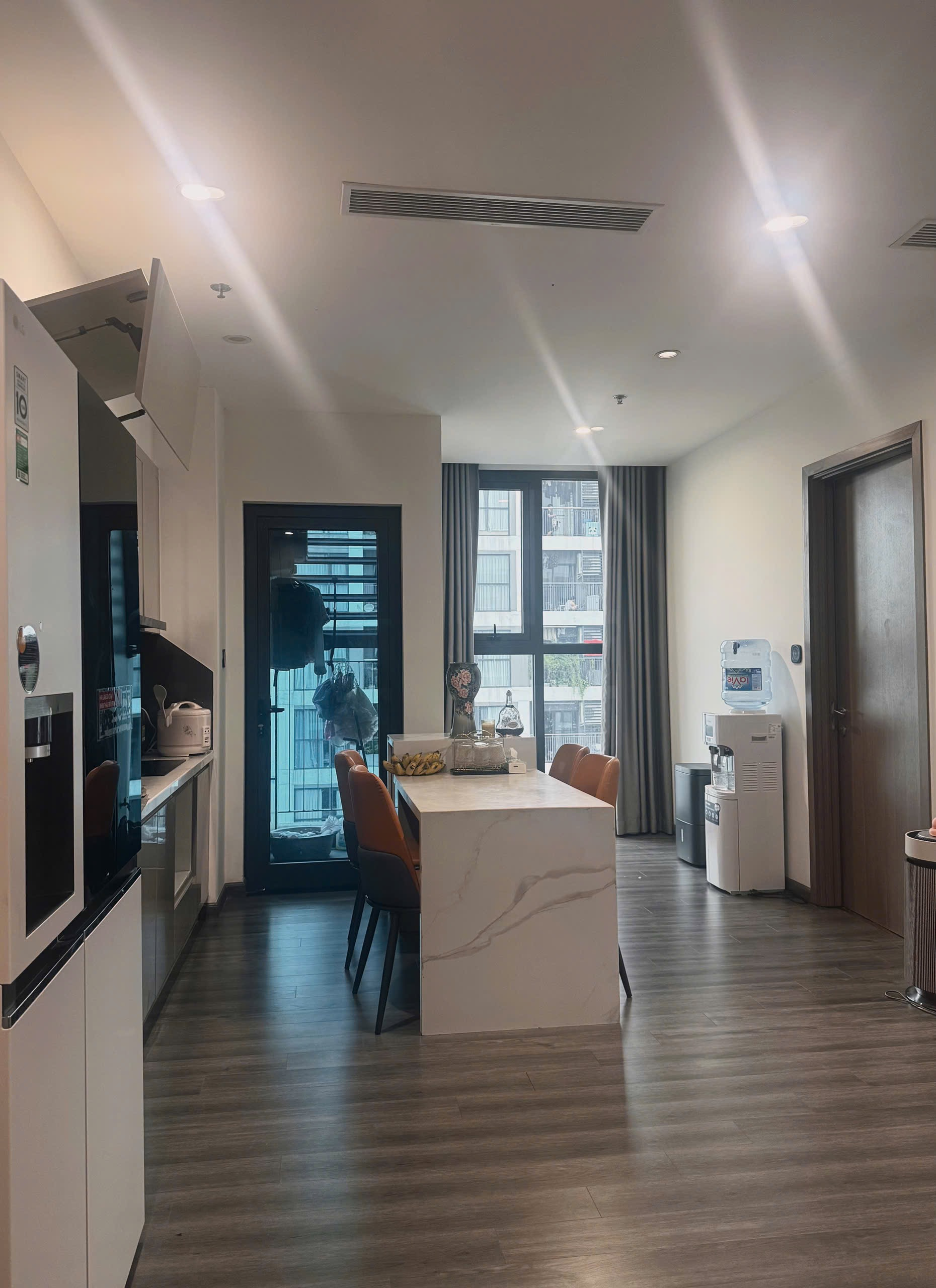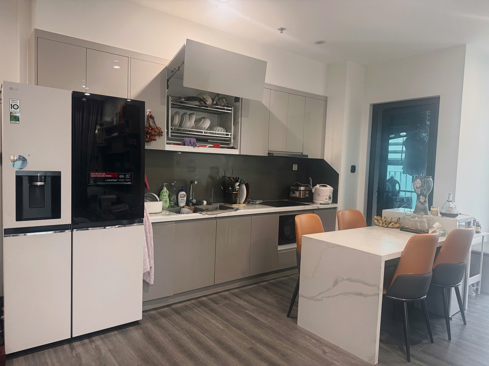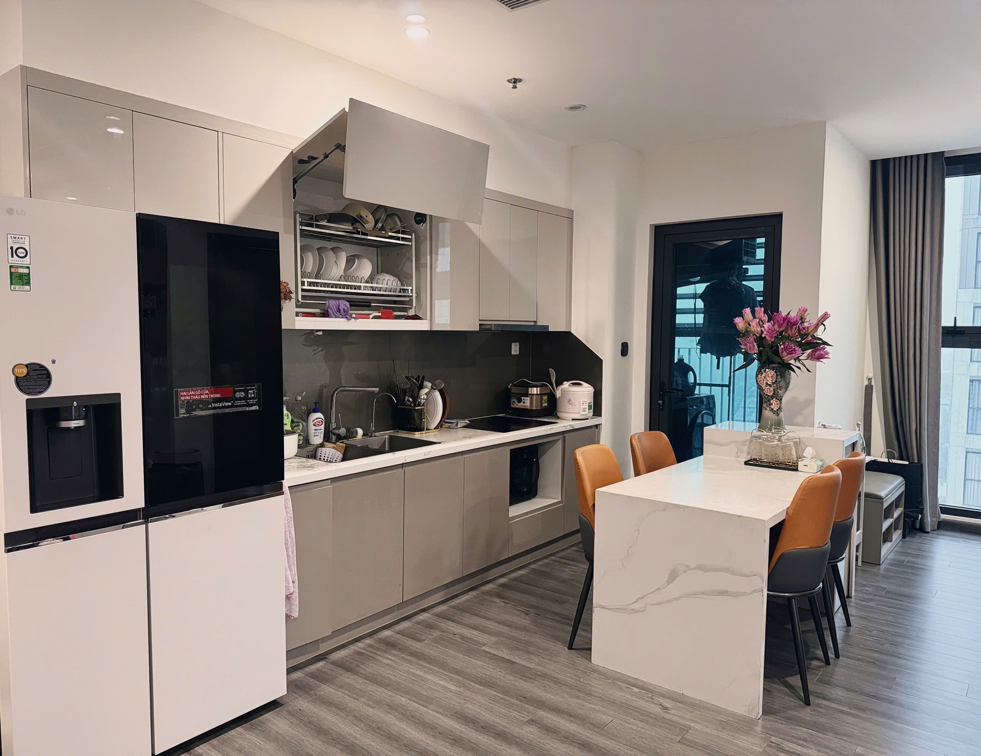 Căn hộ hiện đại, thoáng đãng với sàn gỗ tông xám, nội thất đầy đủ tiện nghi và hoàn thiện cao cấp.
