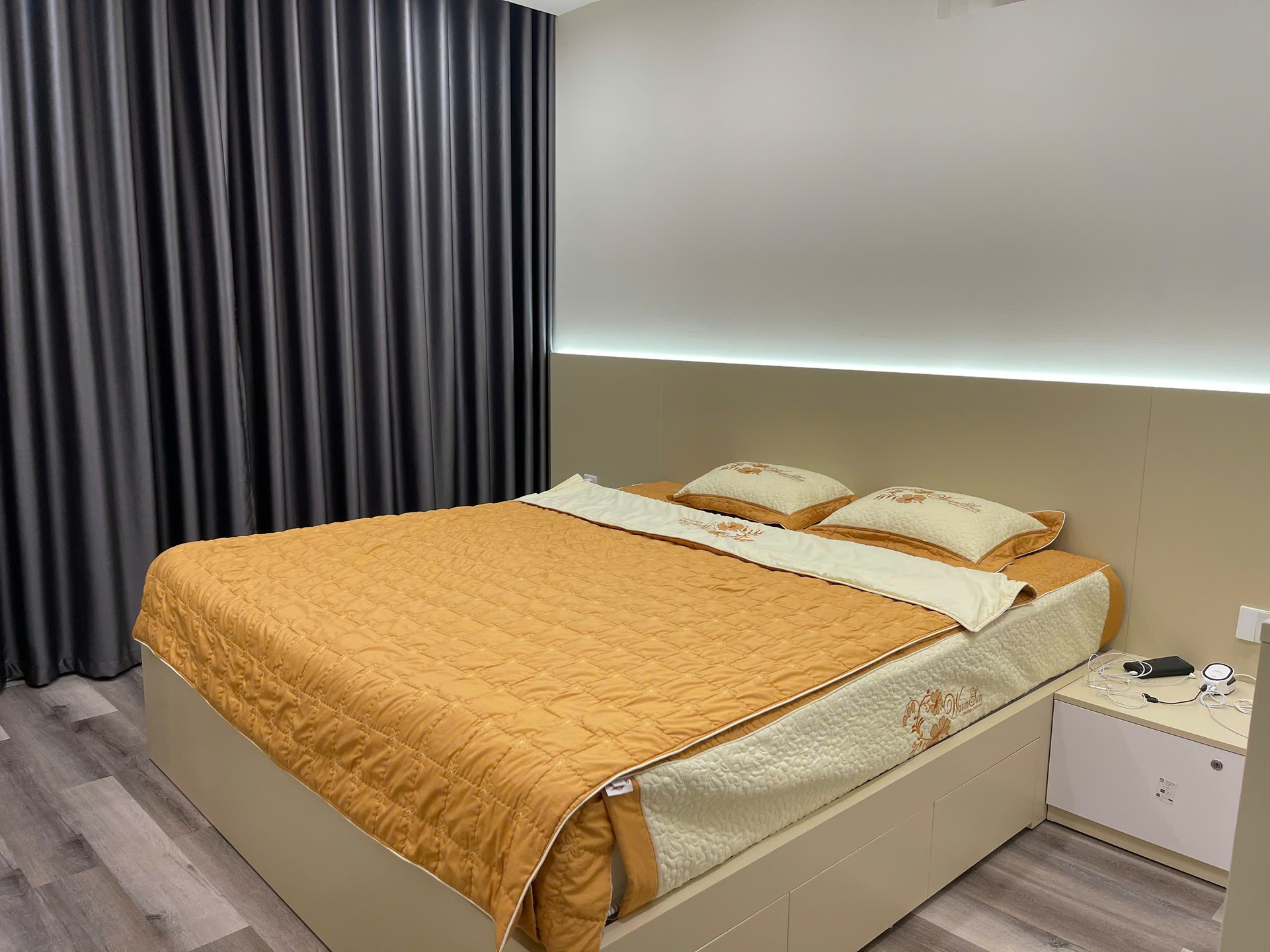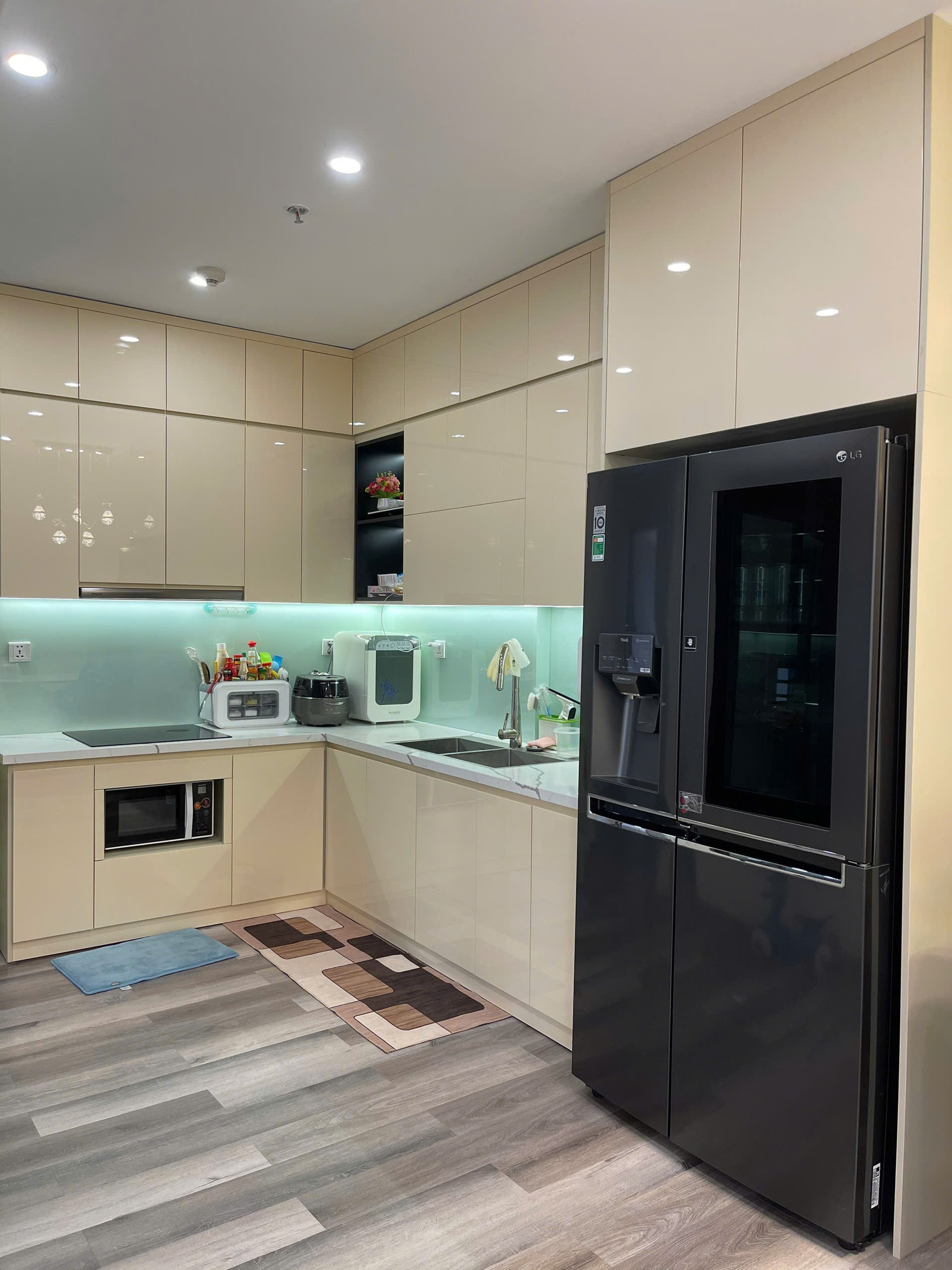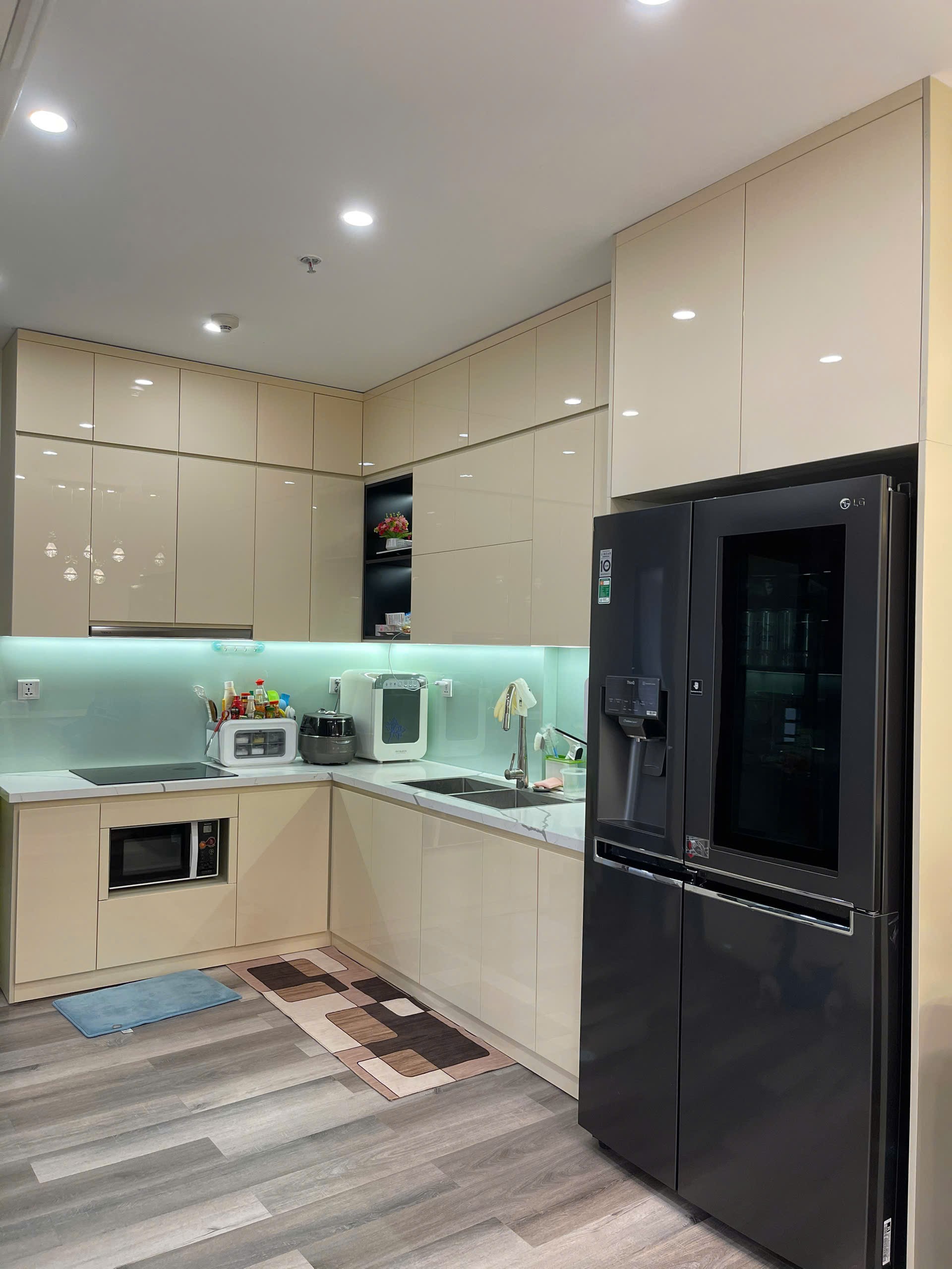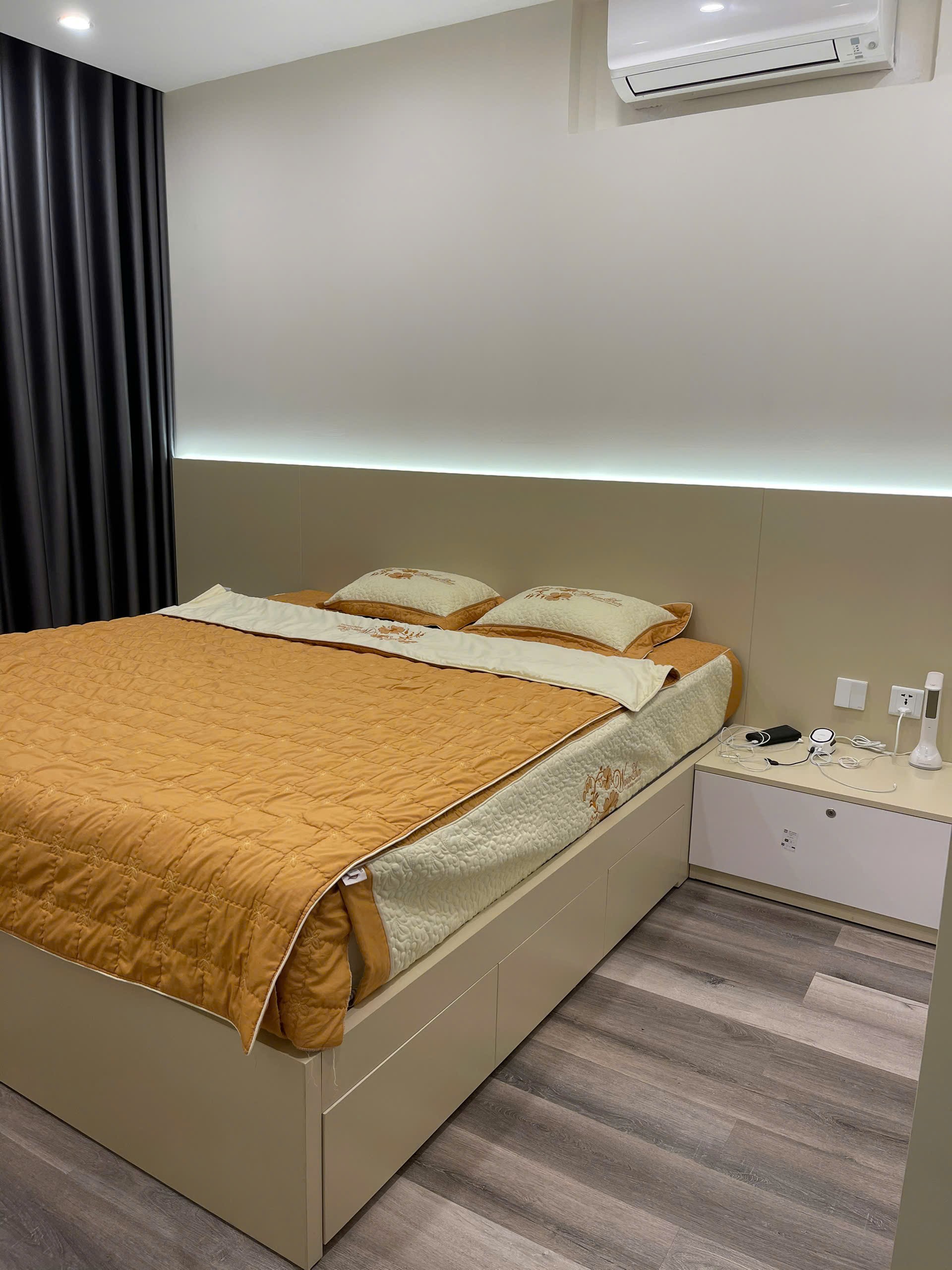 Căn hộ hiện đại, sang trọng với nội thất cao cấp, tông màu be và xám chủ đạo. Không gian sống tiện nghi, ấm cúng, phù hợp cho gia đình.