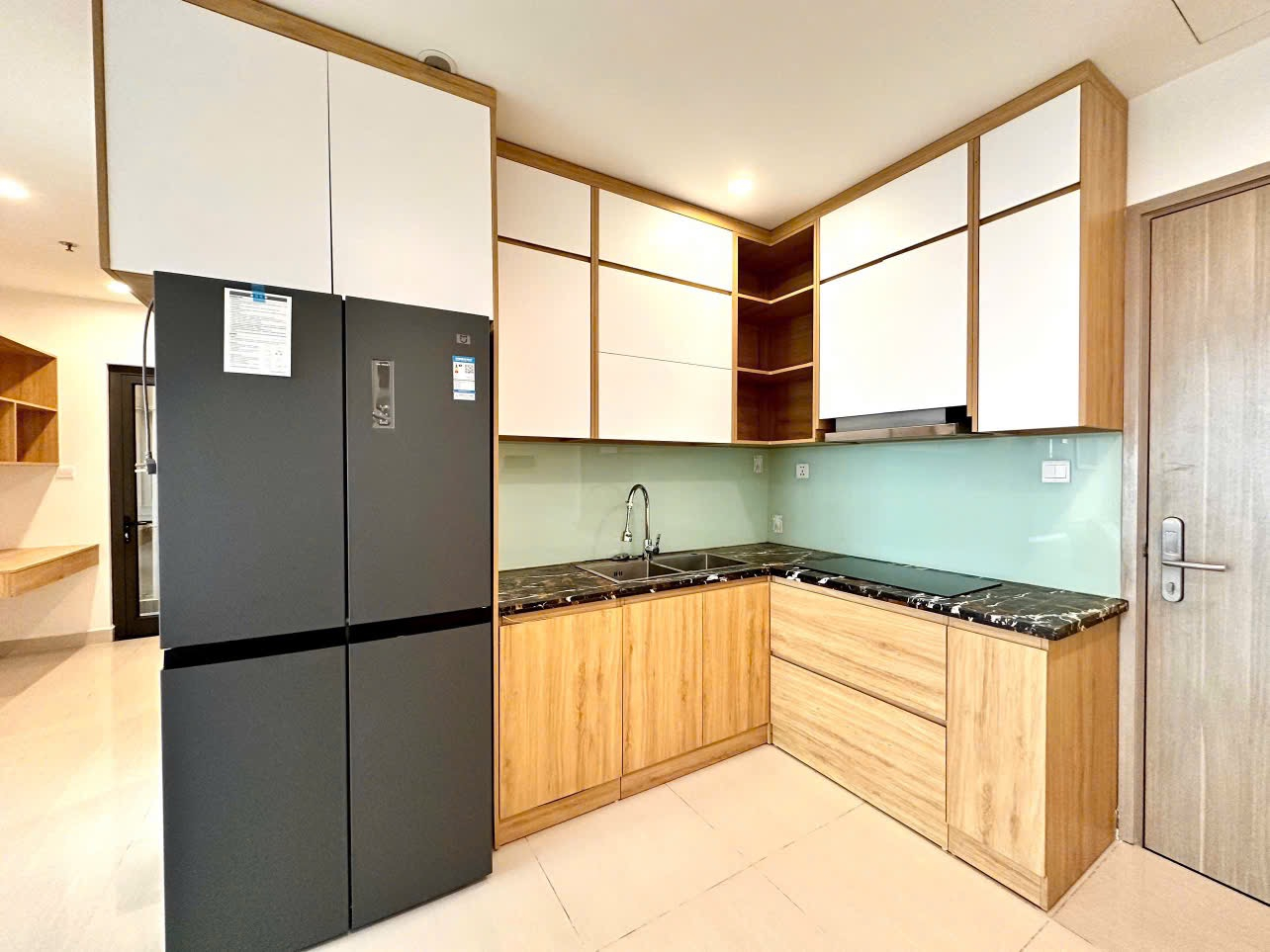 Căn hộ hiện đại, thoáng đãng với tông màu trung tính ấm cúng. Nội thất gỗ tự nhiên, đầy đủ tiện nghi và hoàn thiện cao cấp.
