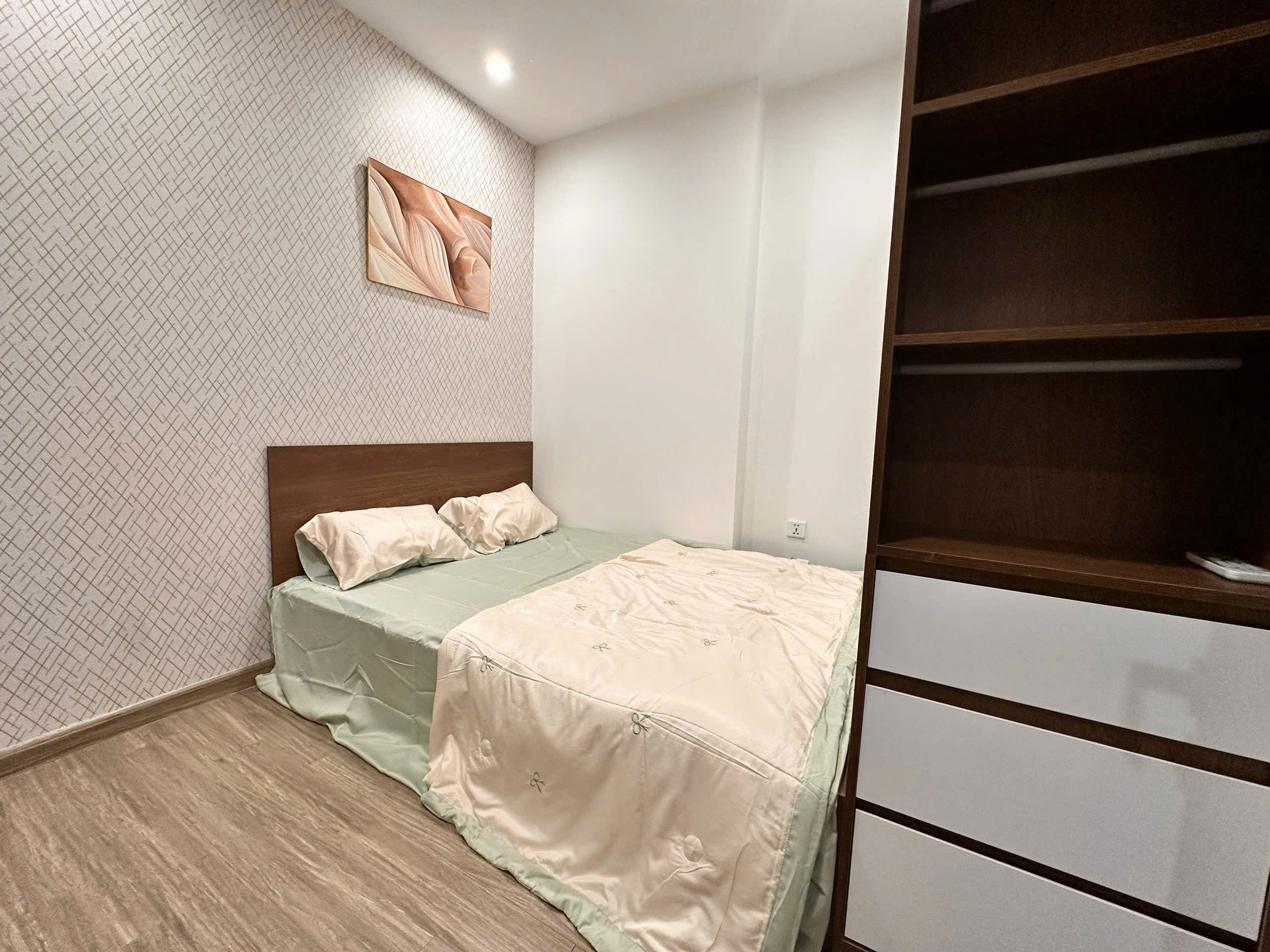 Căn hộ hiện đại, ấm cúng với tông màu be và cam đất chủ đạo. Nội thất đầy đủ, hoàn thiện cao cấp, mang đến không gian sống tiện nghi và sang trọng.