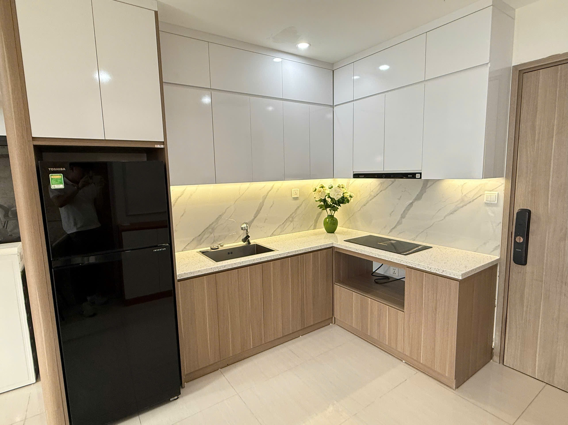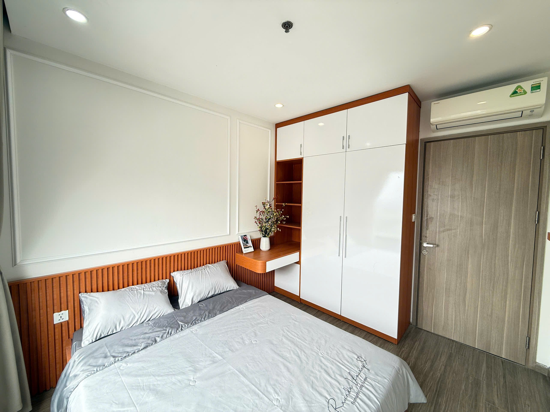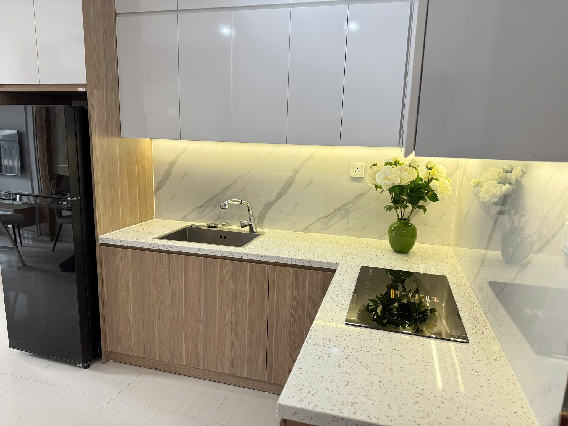 Căn hộ hiện đại, thoáng đãng với tông màu be và gỗ ấm cúng. Nội thất đầy đủ, hoàn thiện cao cấp, ban công view thành phố.