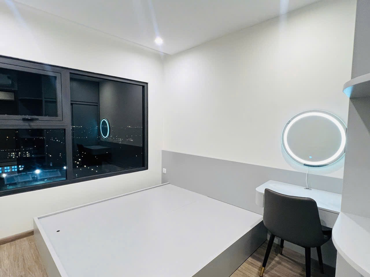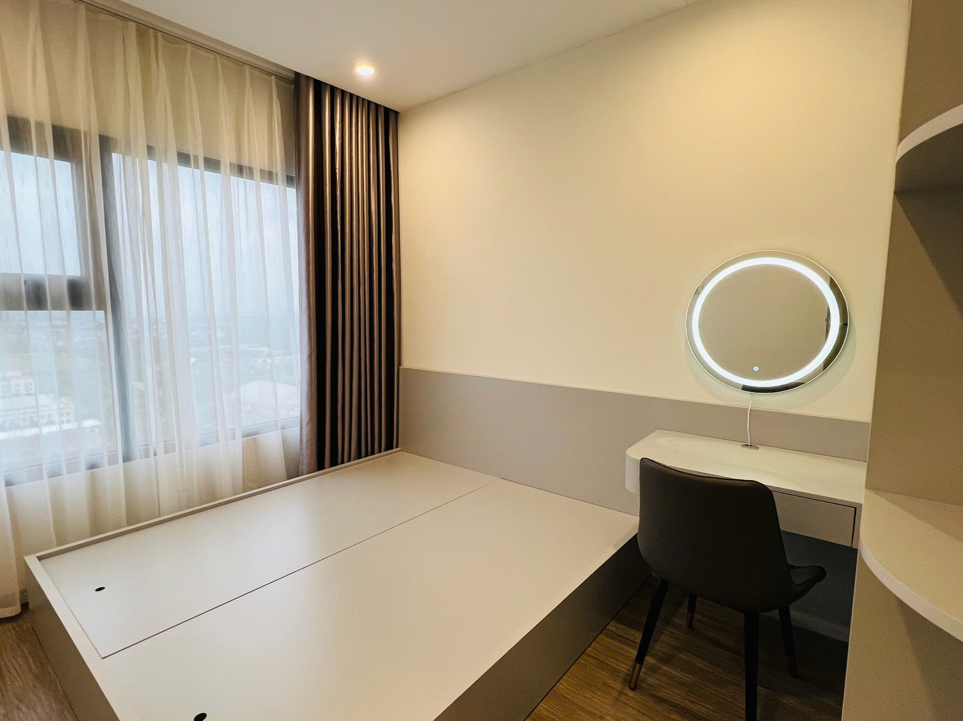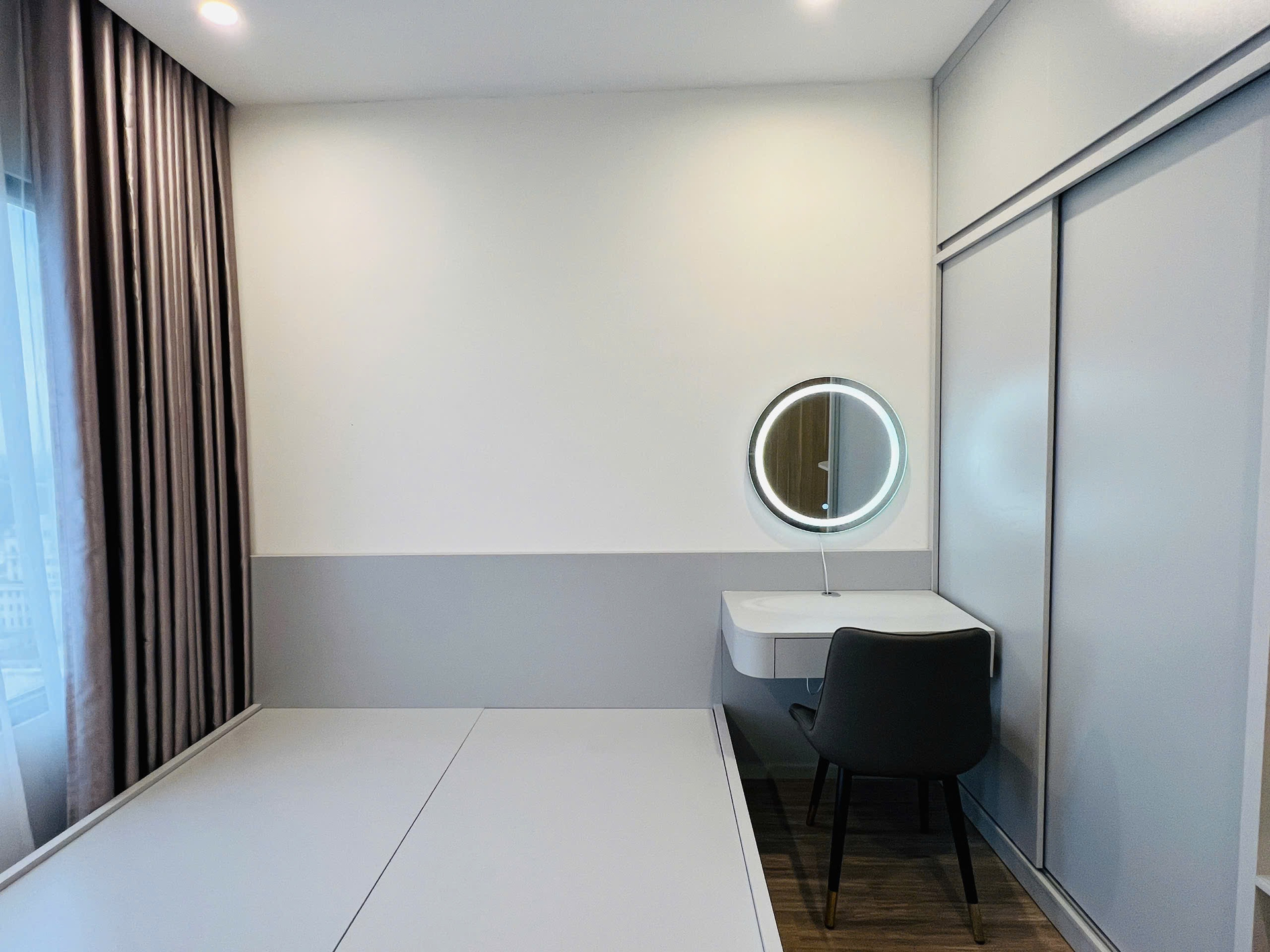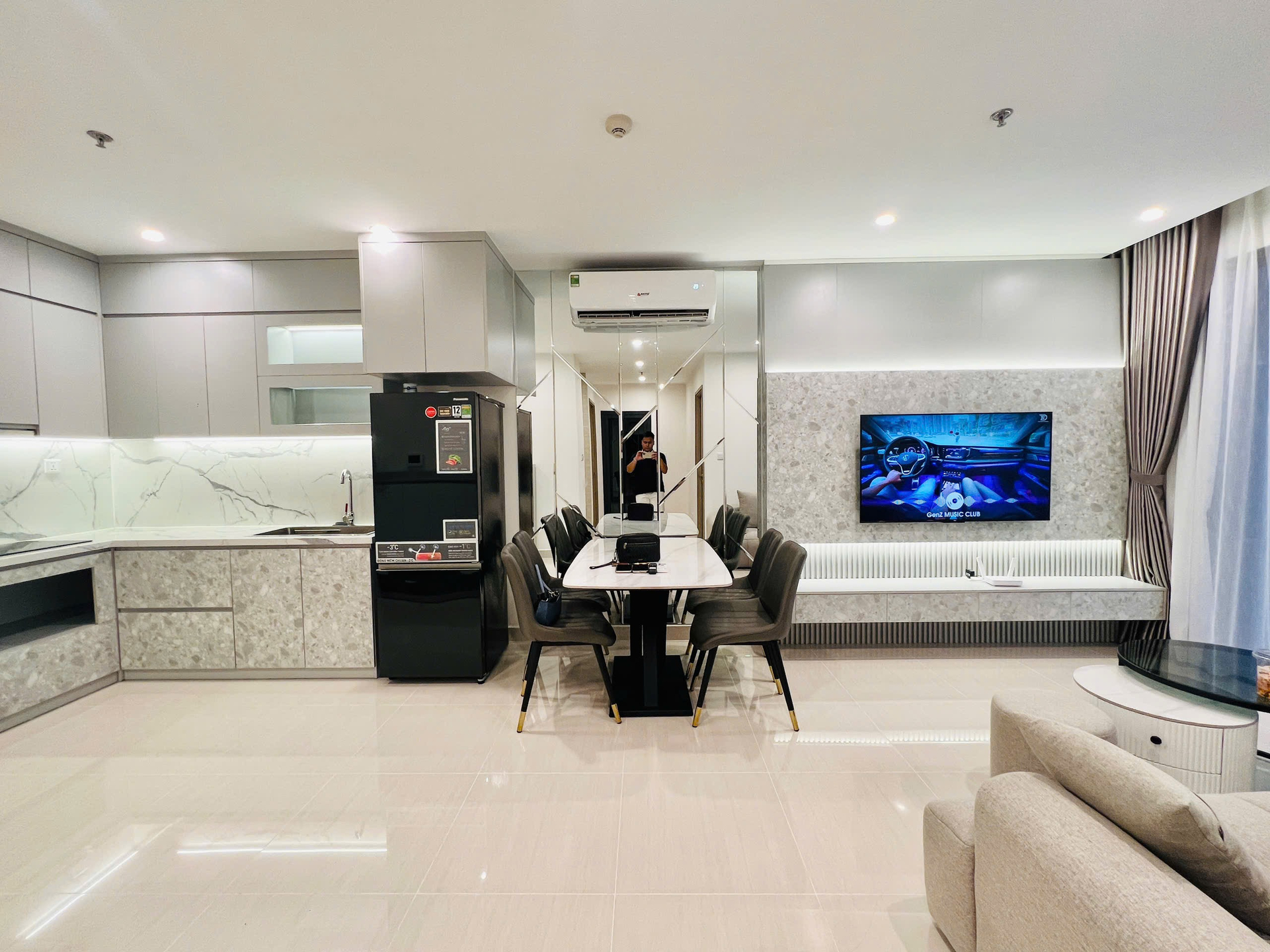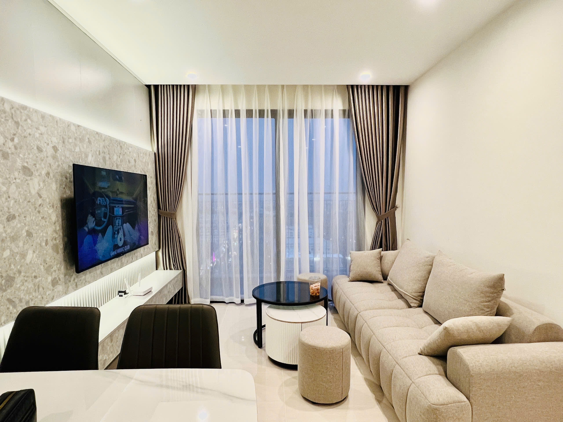 Căn hộ hiện đại, tông màu trung tính sang trọng với sàn gạch sáng bóng. Nội thất đầy đủ, hoàn thiện cao cấp, mang lại không gian sống tiện nghi và tinh tế.