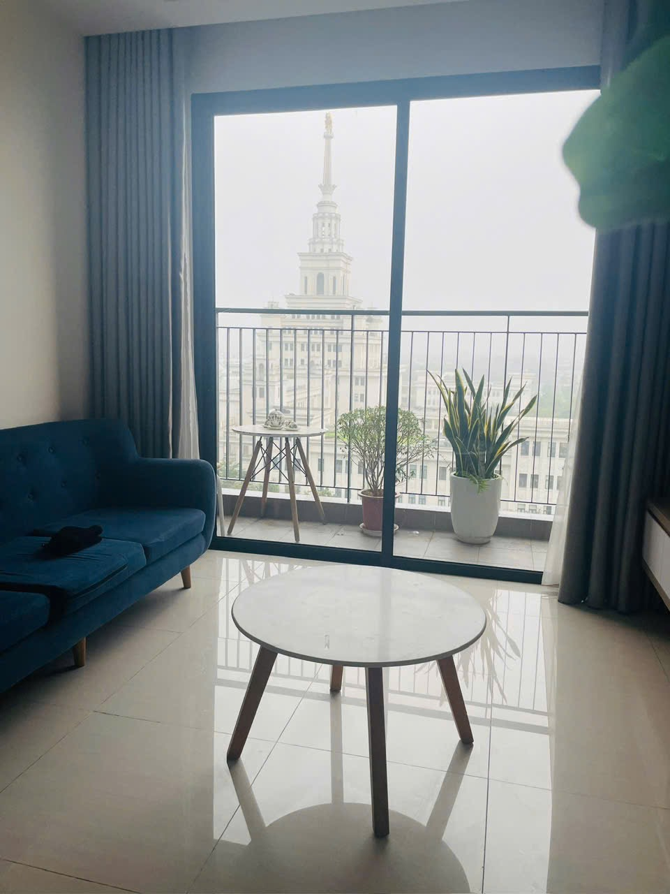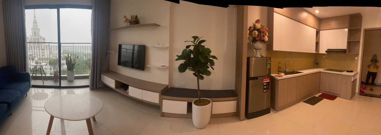 Căn hộ hiện đại, thoáng đãng với tông màu trung tính, nội thất gỗ sáng và đầy đủ tiện nghi. Ban công rộng rãi, view thành phố đẹp.