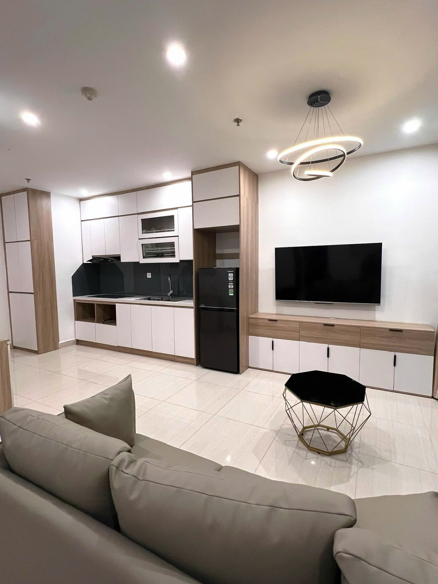 Căn hộ hiện đại, đầy đủ tiện nghi với bếp mở, phòng ngủ ấm cúng và phòng tắm sạch sẽ. Thiết kế tông màu trung tính, hoàn thiện cao cấp.