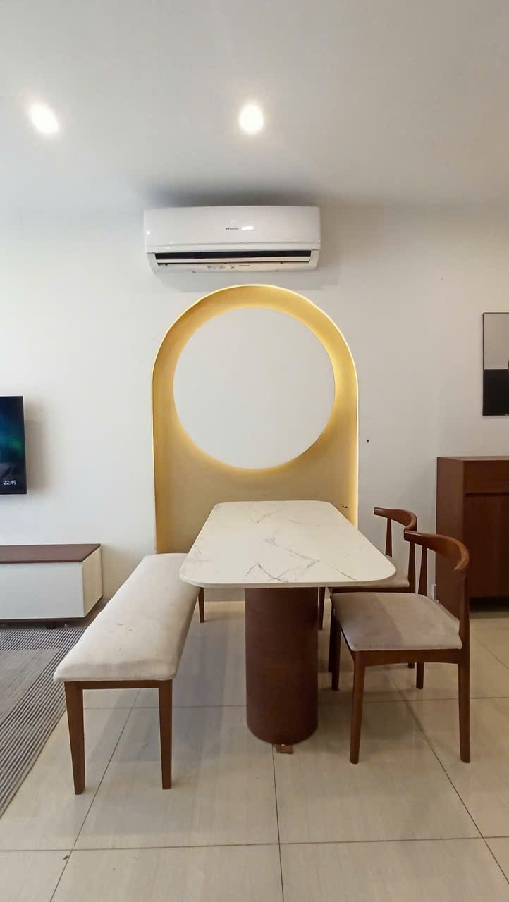 Căn hộ hiện đại, ấm cúng với tông màu be và gỗ chủ đạo. Không gian thoáng đãng, đầy đủ tiện nghi từ phòng khách, phòng ngủ đến bếp, mang lại trải nghiệm sống tiện lợi.