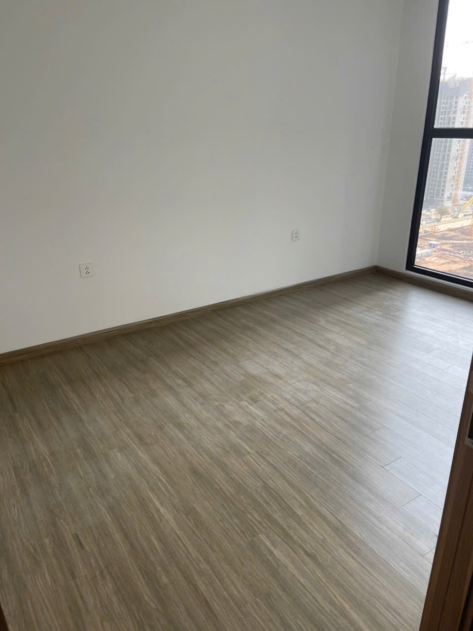 Căn hộ hiện đại, không gian rộng rãi với sàn gỗ ấm áp và tường trắng tinh tế. Ánh sáng tự nhiên chan hòa từ cửa sổ lớn, ban công thoáng đãng.