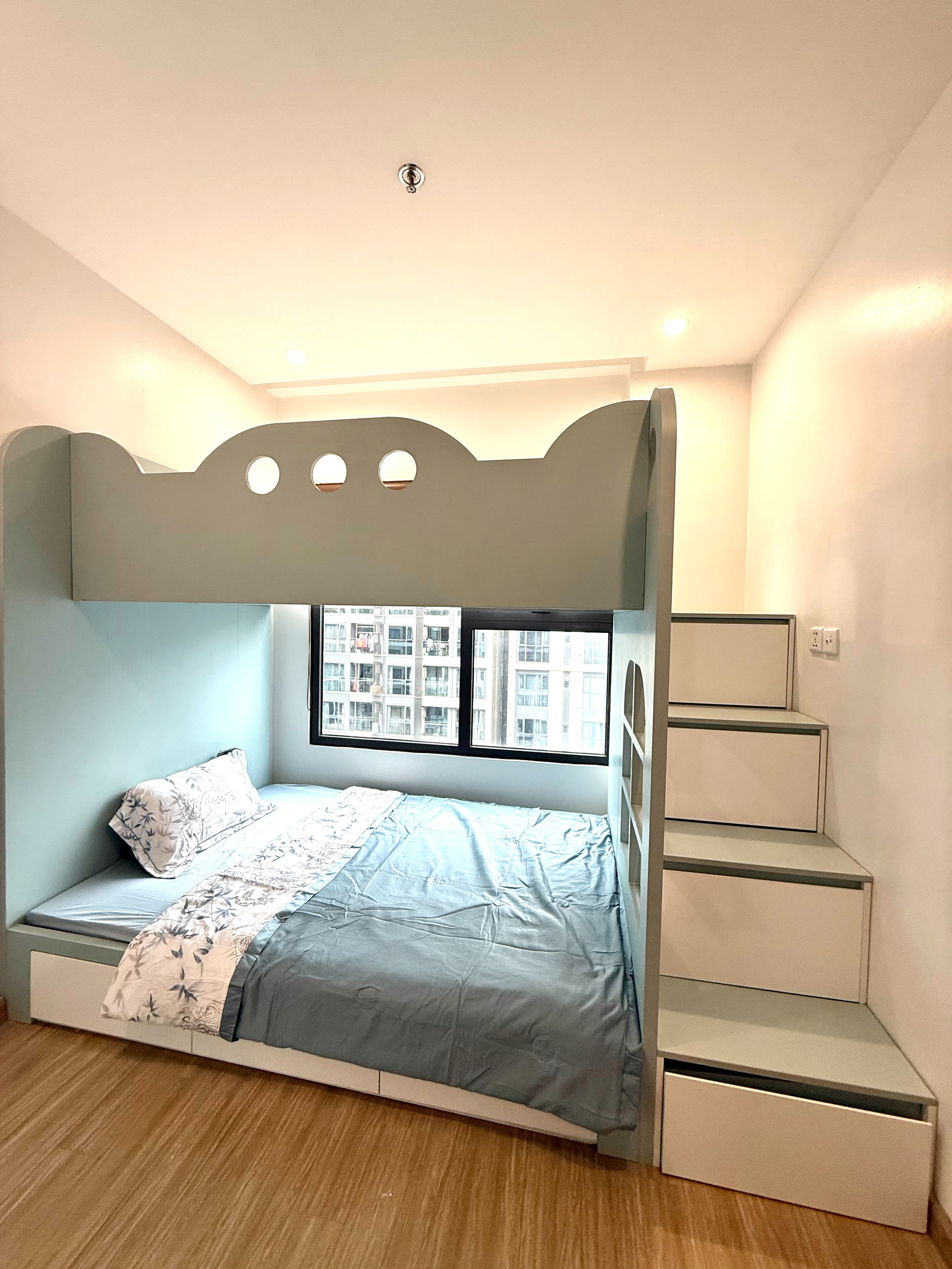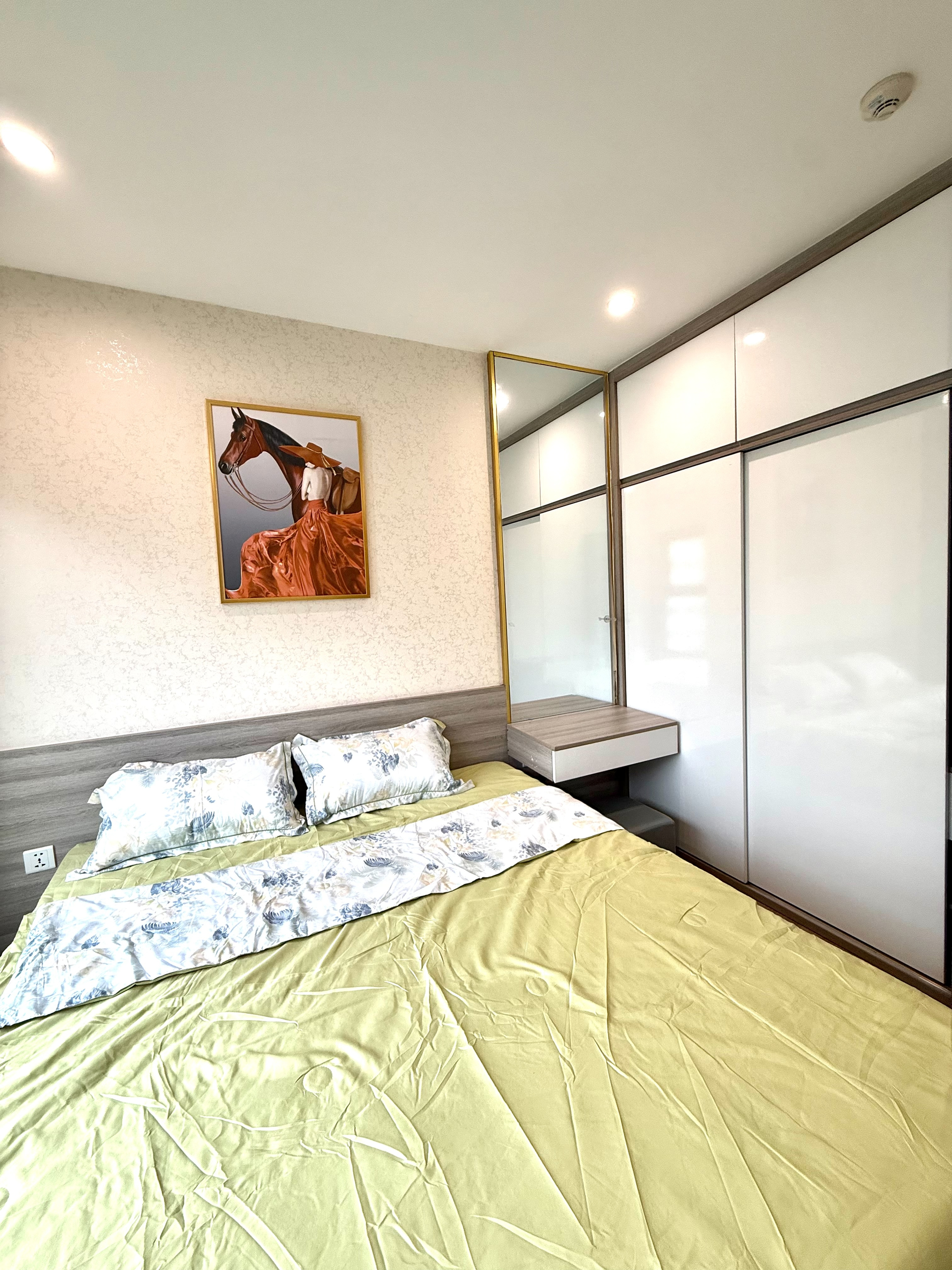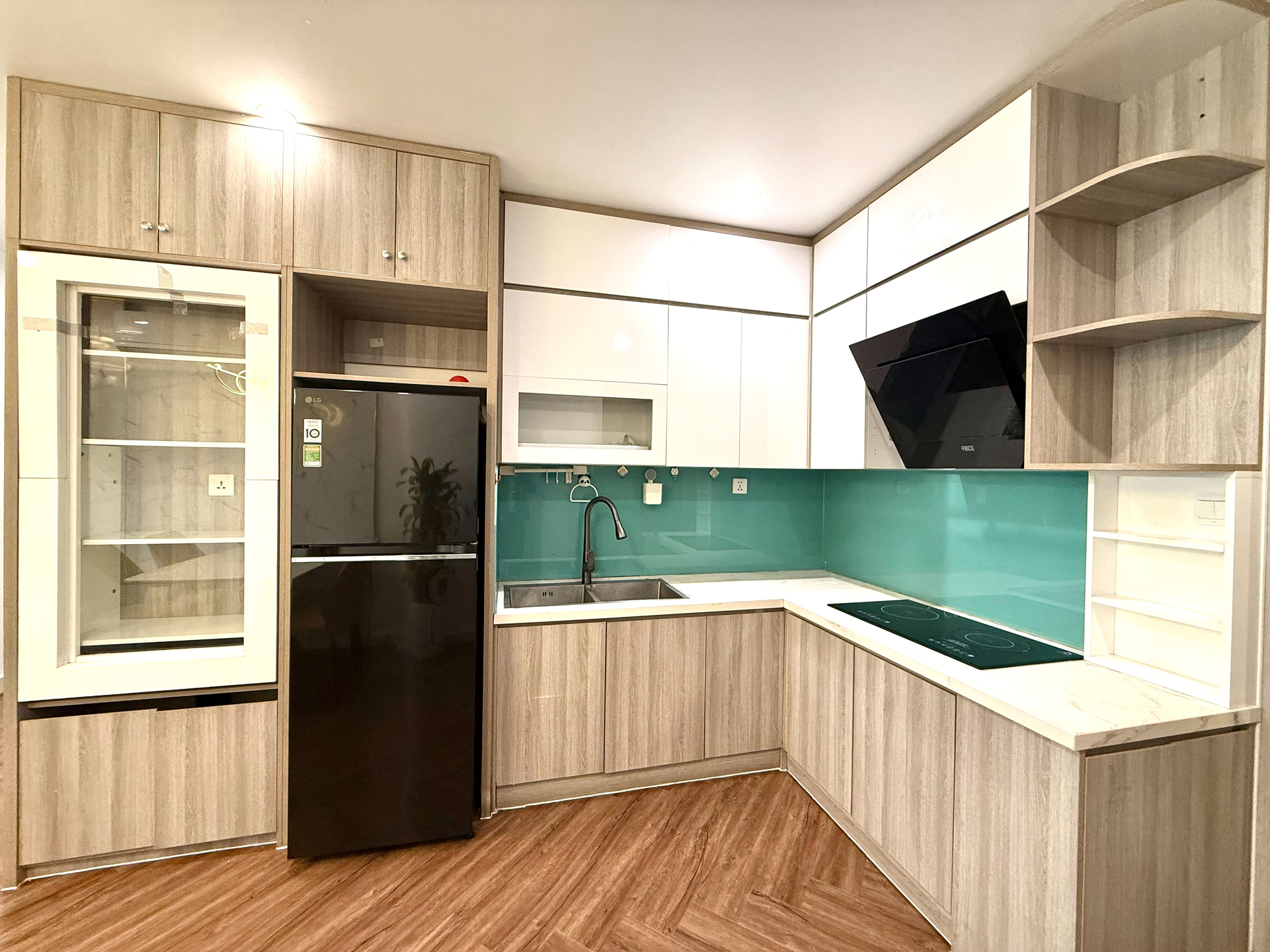 Căn hộ hiện đại, ấm cúng với sàn gỗ xương cá, nội thất tông màu trung tính và ánh sáng tự nhiên. Đầy đủ tiện nghi, hoàn thiện cao cấp.