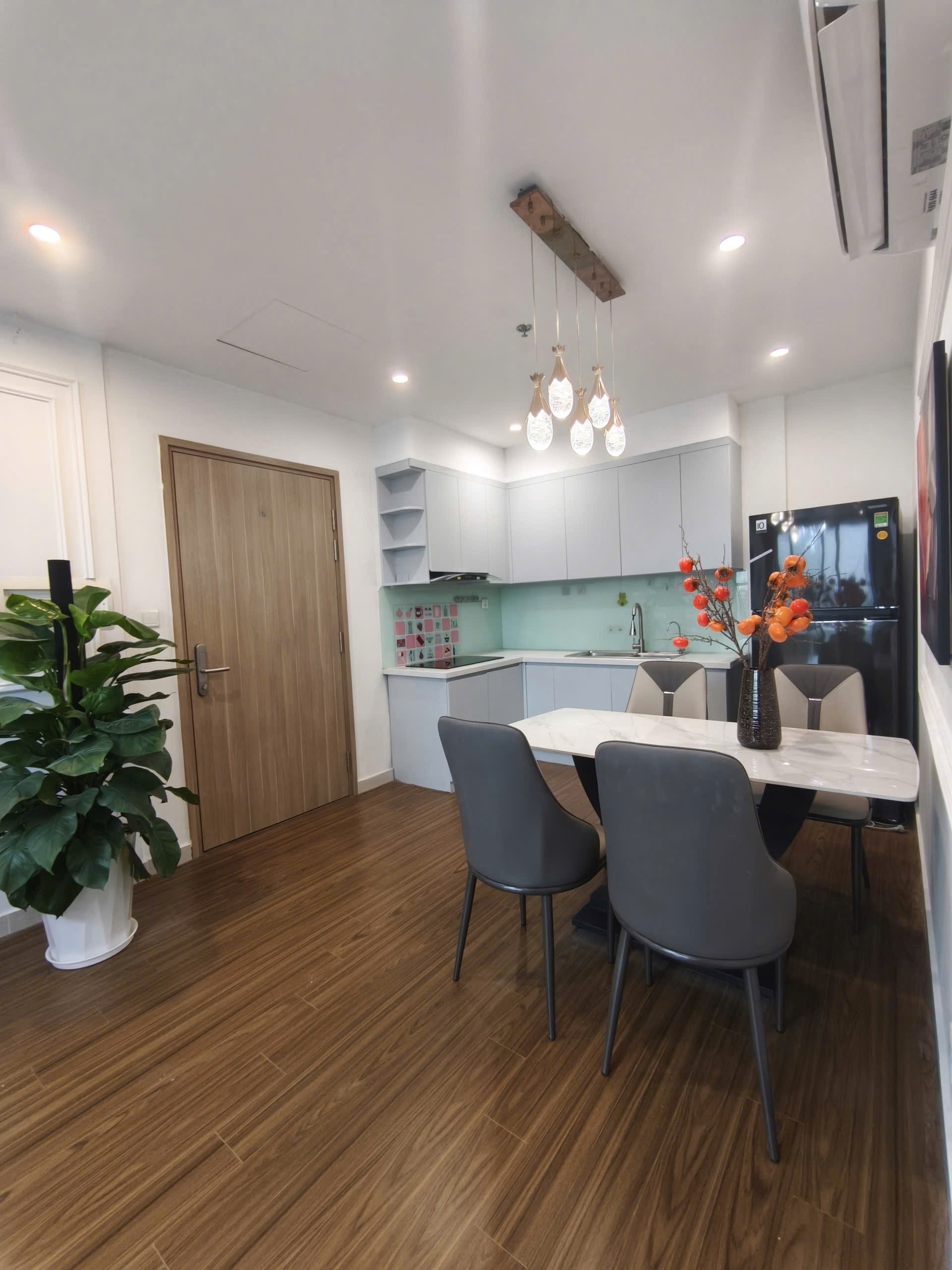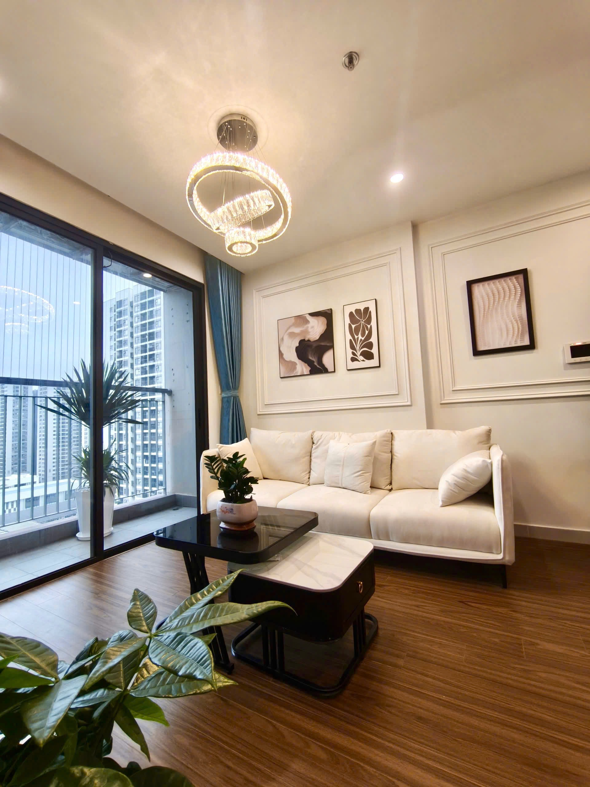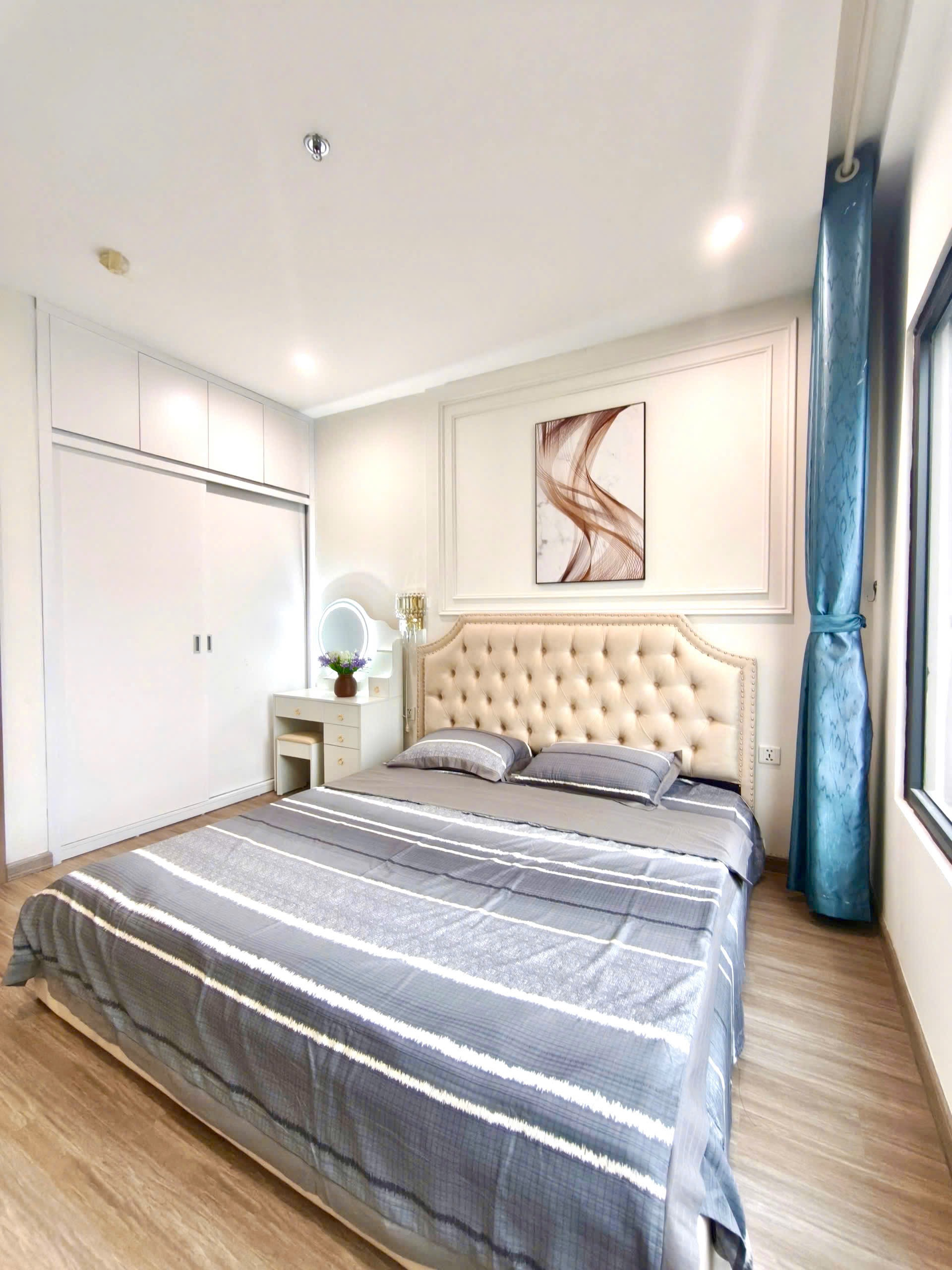 Căn hộ hiện đại, sang trọng với sàn gỗ ấm cúng, nội thất tông trắng be tinh tế. Ánh sáng tự nhiên chan hòa, đầy đủ tiện nghi và hoàn thiện cao cấp.