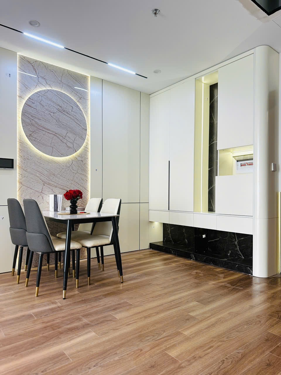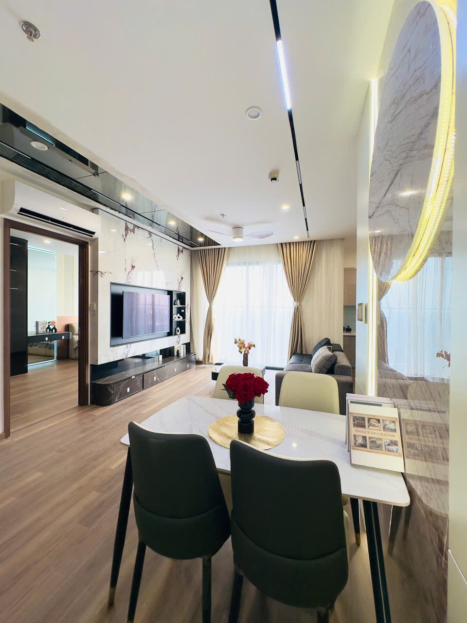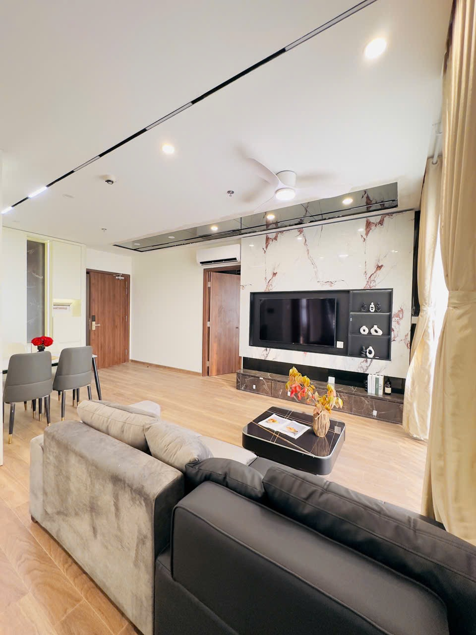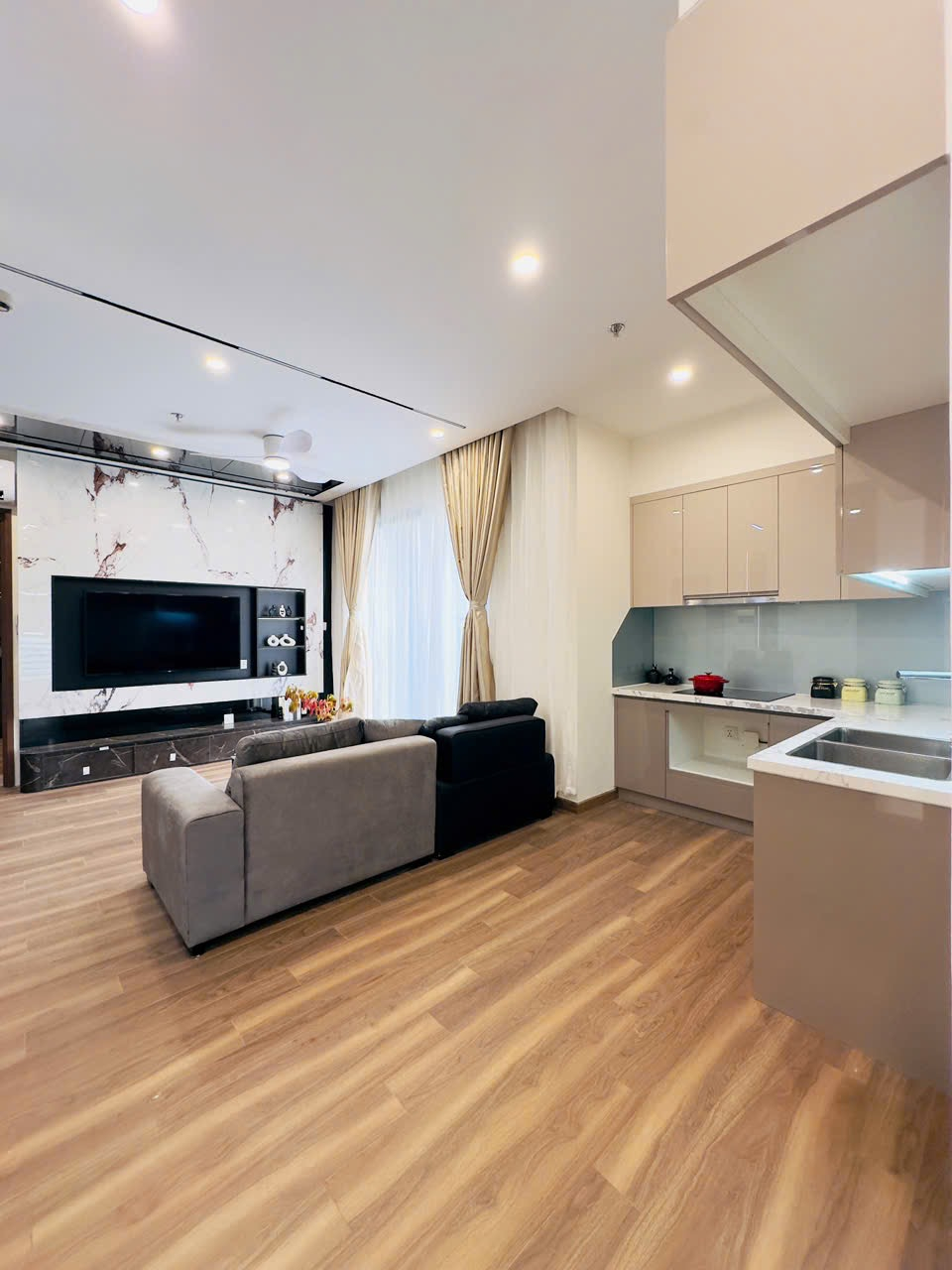Căn hộ hiện đại, sang trọng với sàn gỗ ấm cúng, nội thất cao cấp và đầy đủ tiện nghi. Không gian thoáng đãng, ánh sáng tự nhiên chan hòa.