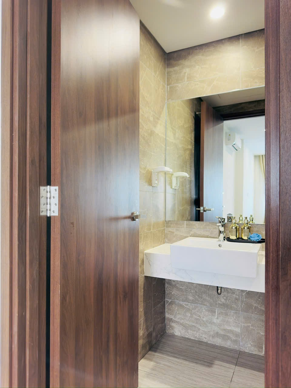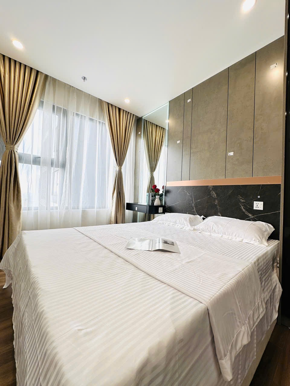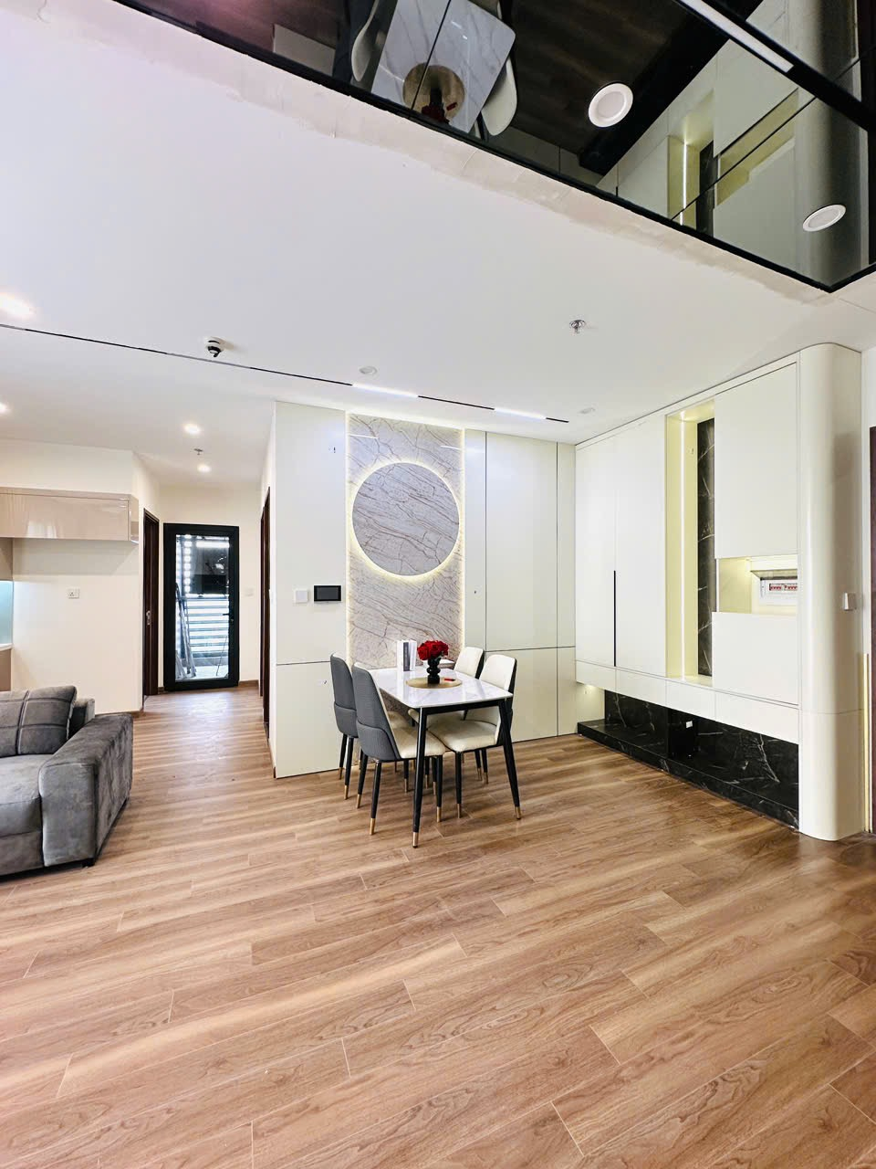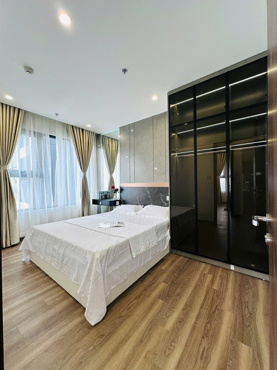 Căn hộ hiện đại, sang trọng với sàn gỗ ấm cúng, nội thất cao cấp và đầy đủ tiện nghi. Không gian thoáng đãng, ánh sáng tự nhiên chan hòa.