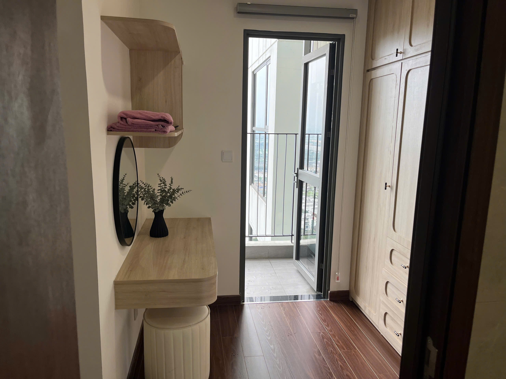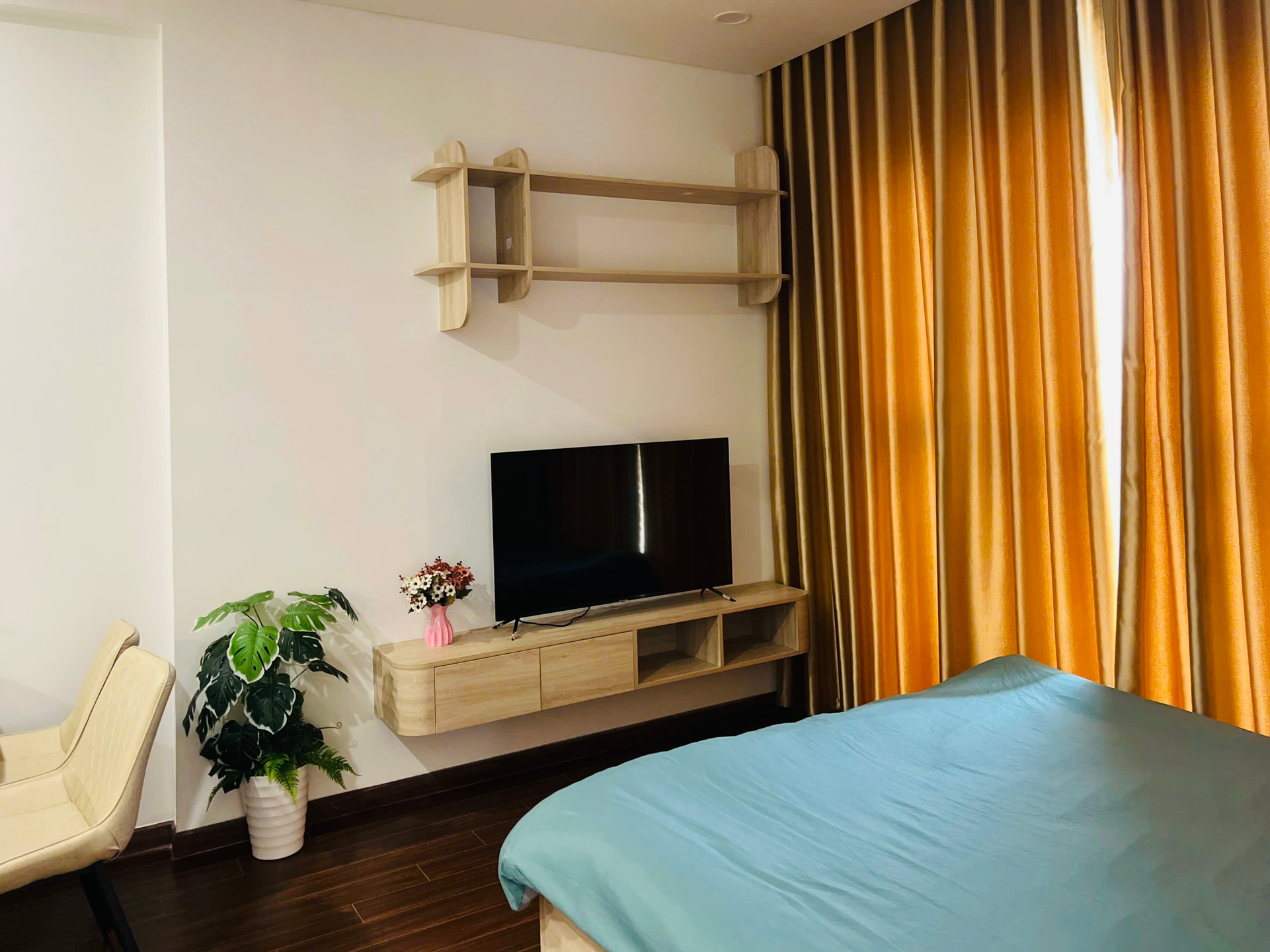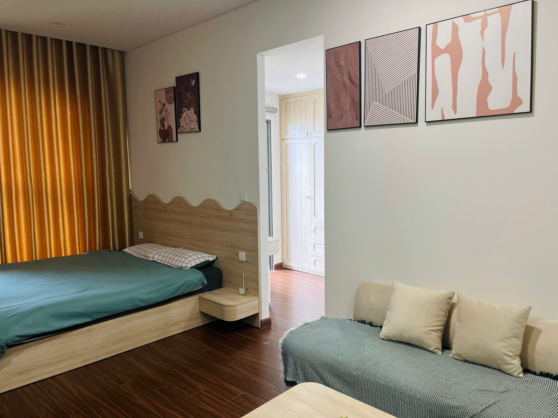 Căn hộ studio hiện đại, thiết kế thông minh với nội thất gỗ sáng màu, sàn gỗ ấm cúng và đầy đủ tiện nghi, mang lại không gian sống tiện lợi.