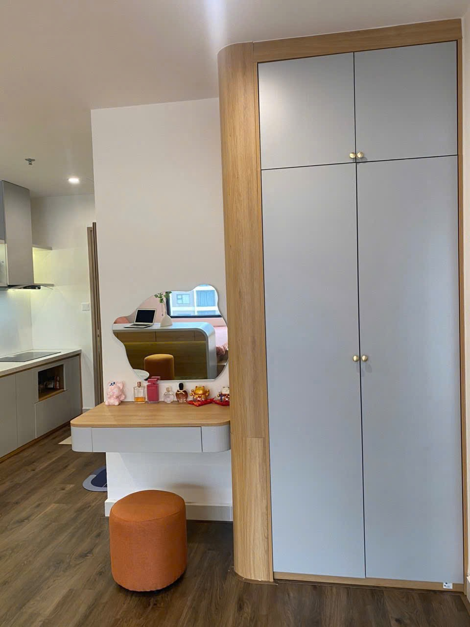 Căn hộ studio hiện đại, thiết kế thông minh với sàn gỗ ấm cúng, nội thất tông cam - xám độc đáo. Không gian tối ưu, đầy đủ tiện nghi.