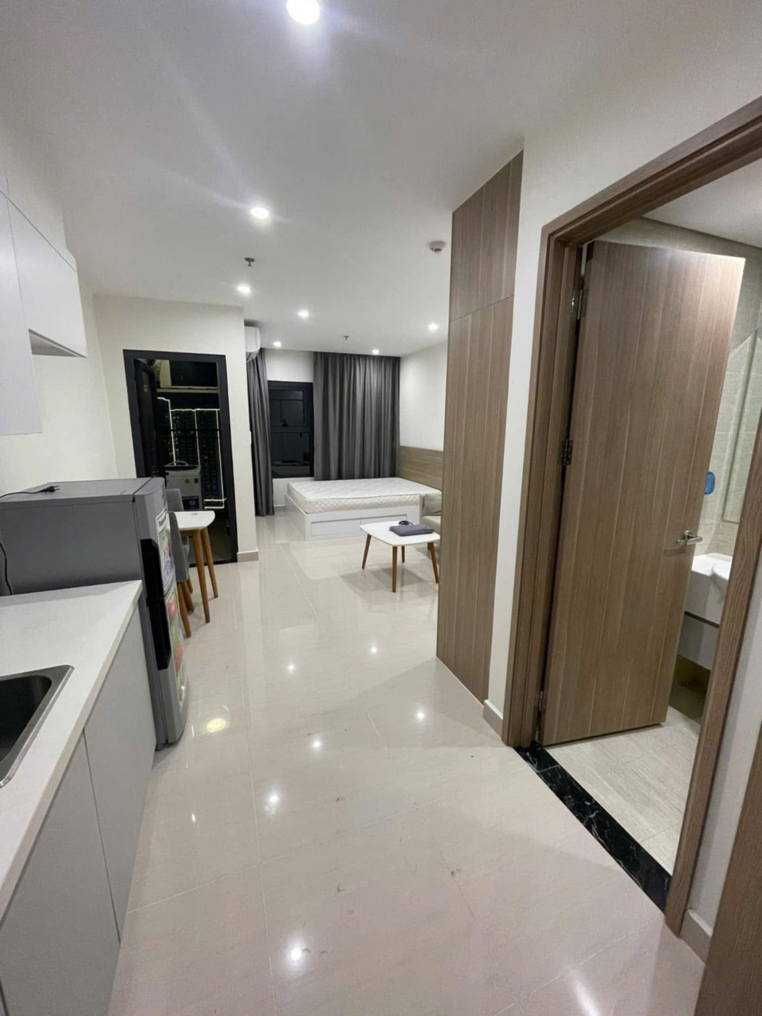 Studio hiện đại, tối giản với tông màu sáng, nội thất cơ bản và bếp mở tiện nghi. Không gian được tối ưu, hoàn thiện tốt.